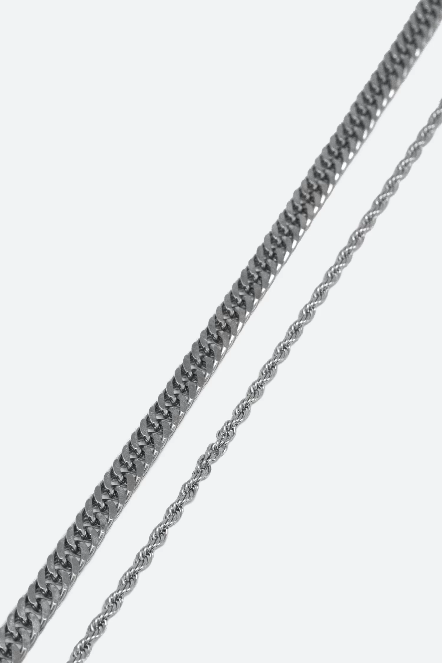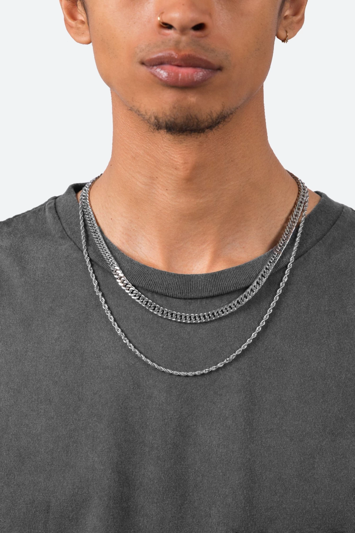 the A1 Double Chain is constructed of stainless steel and features two different link chains with a spring ring clasp.