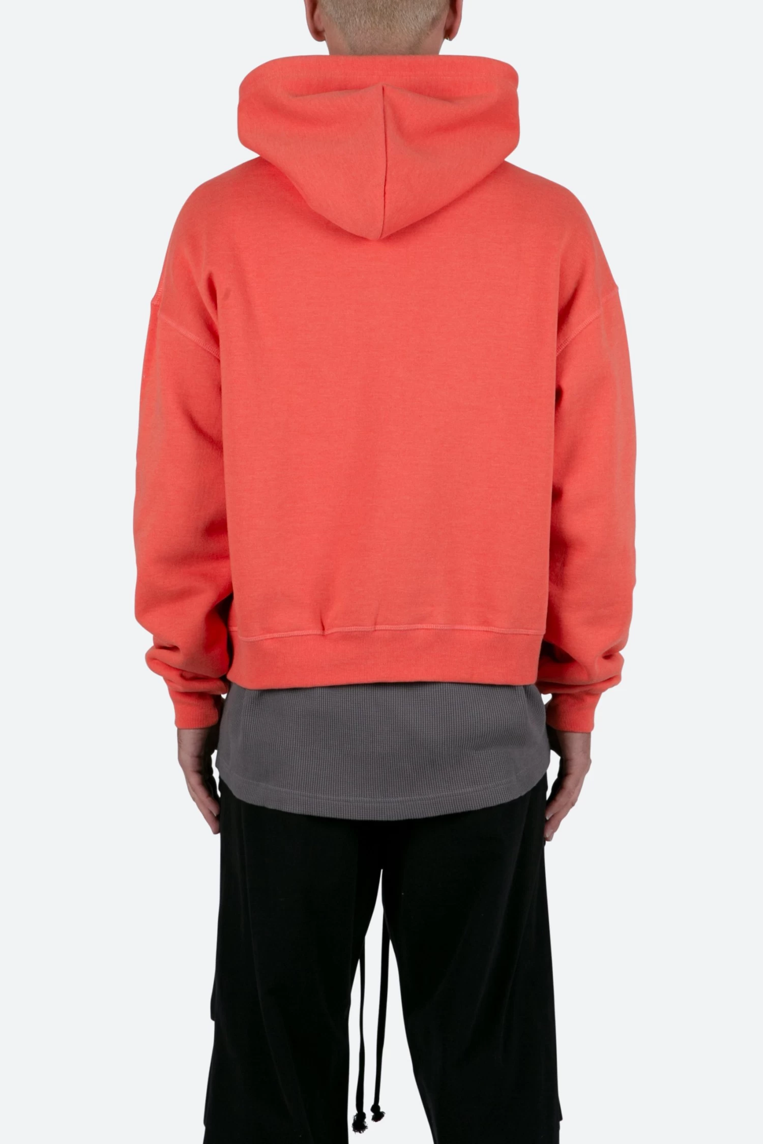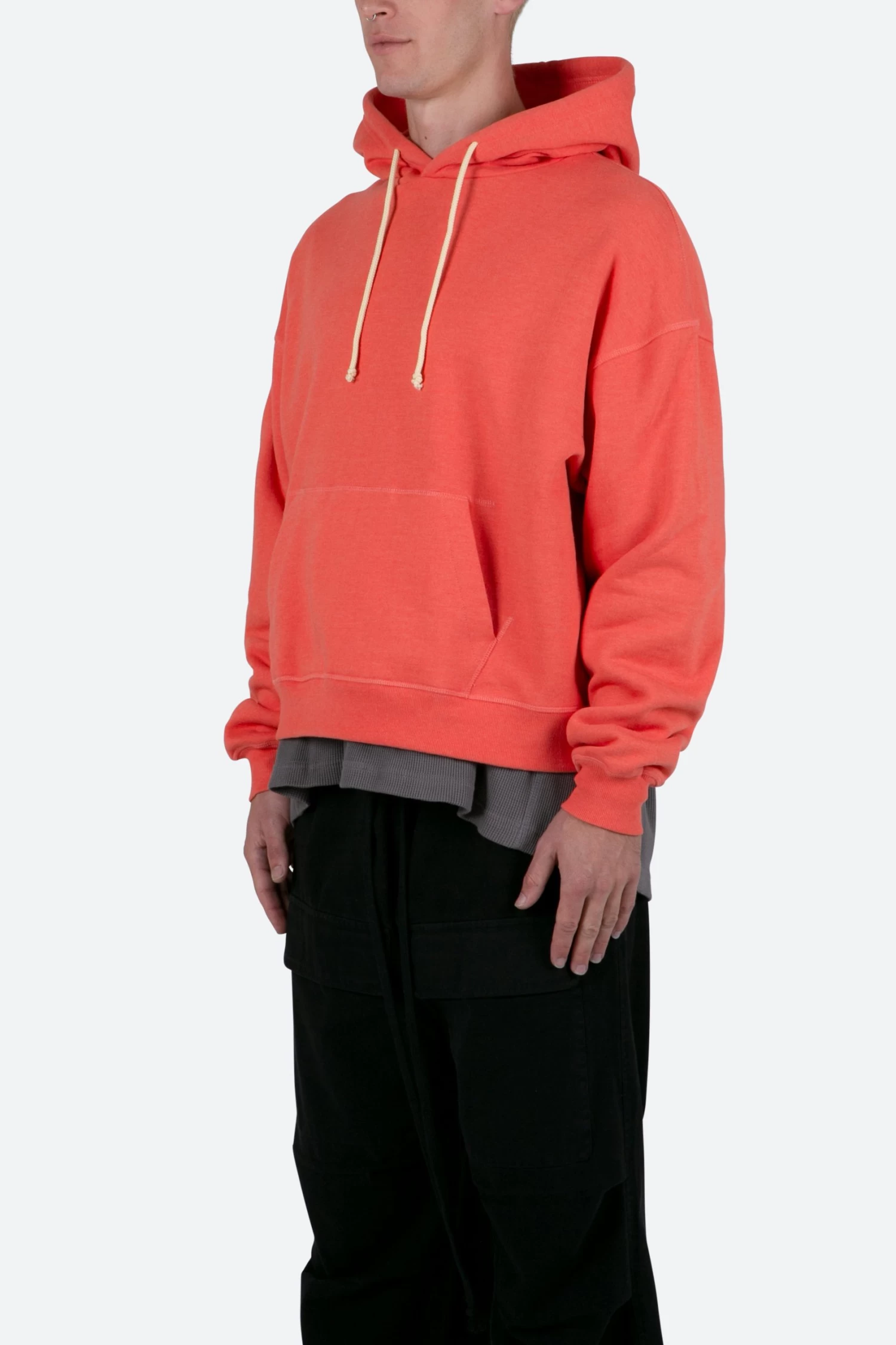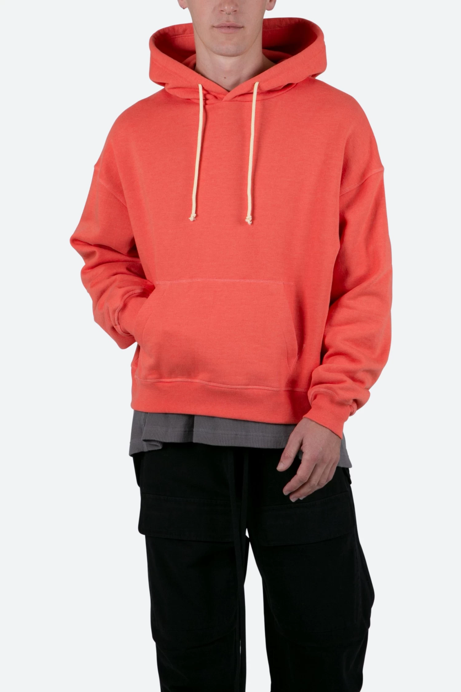 the Antique Hoodie features a relaxed fit, a front pouch pocket, cotton drawcord, and finished with wide gauge ribbing at the waist and arm opening.