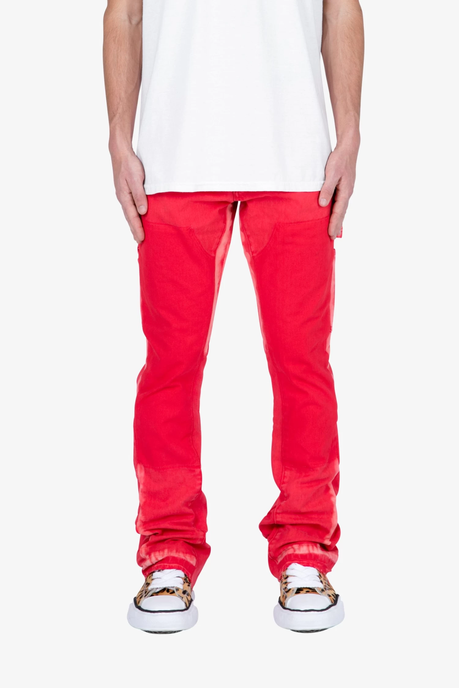 the B404 Flare Denim are designed with our new B fit, which is slim through the thigh and features a slight flare at the leg opening and is constructed from a washed red denim, panelling at the inseam and outseam from self fabric for a slight flare and finished with a deconstructed hem.