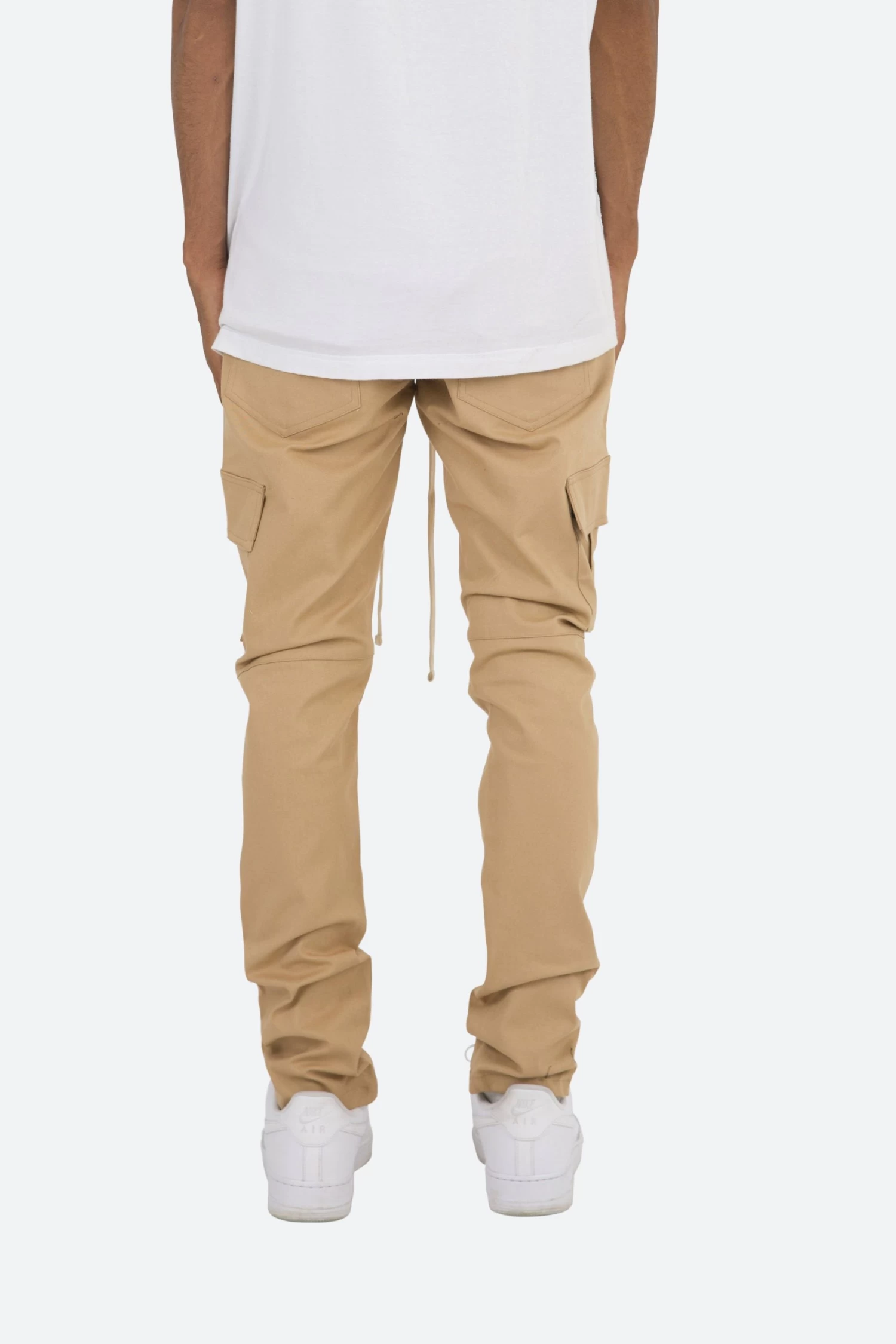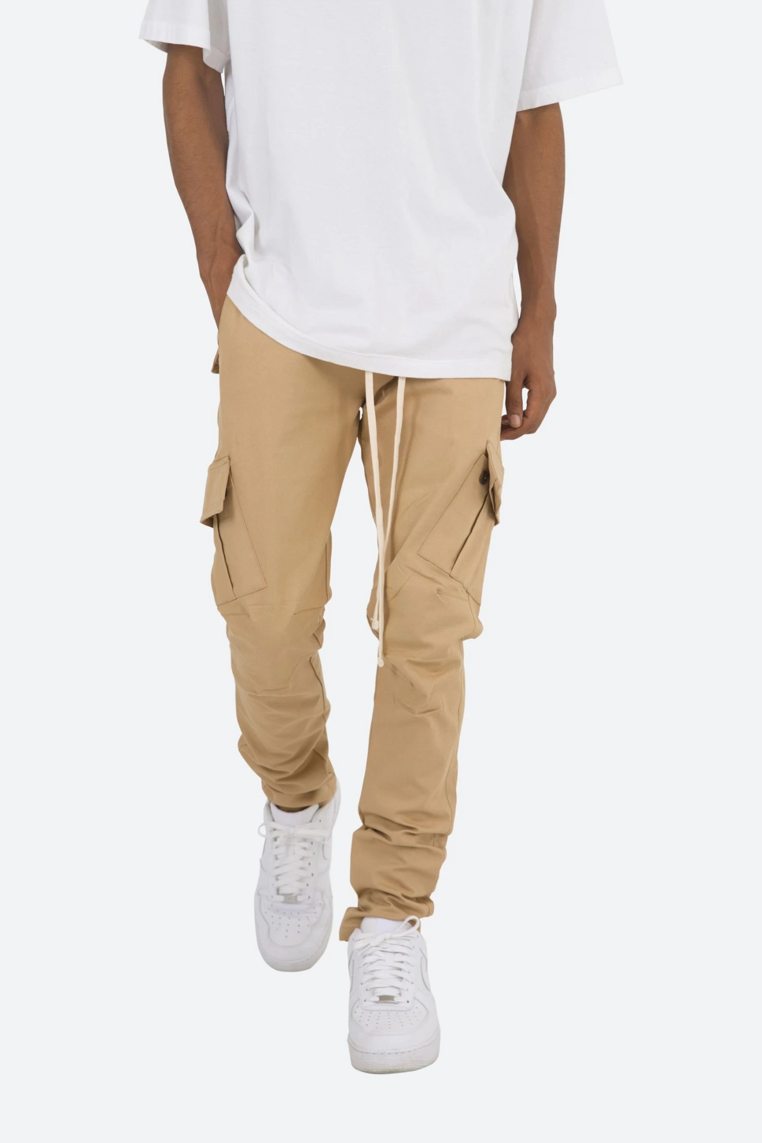 the Cargo Drawcord II Pants are designed with a relaxed fit through the thigh that tapers from the knee to the ankle, with gusseting at the knee, cargo pockets at the side seam, and finished with an elastic waistband.