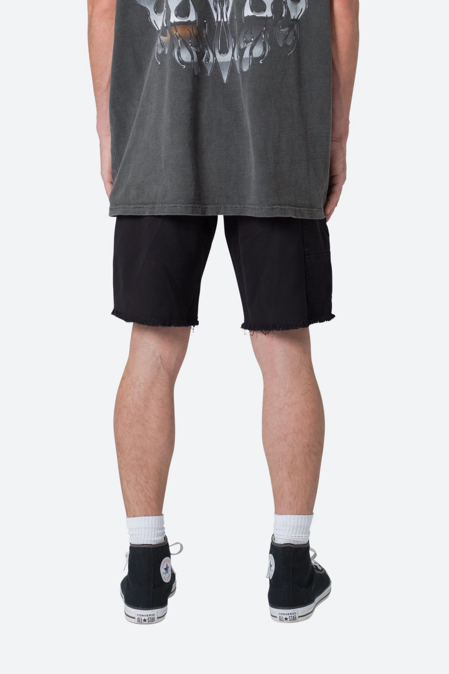 the Carpenter Shorts are designed with a relaxed fit throughout, featuring a vintage wash, carpenter pant details, and finished off with raw hem.