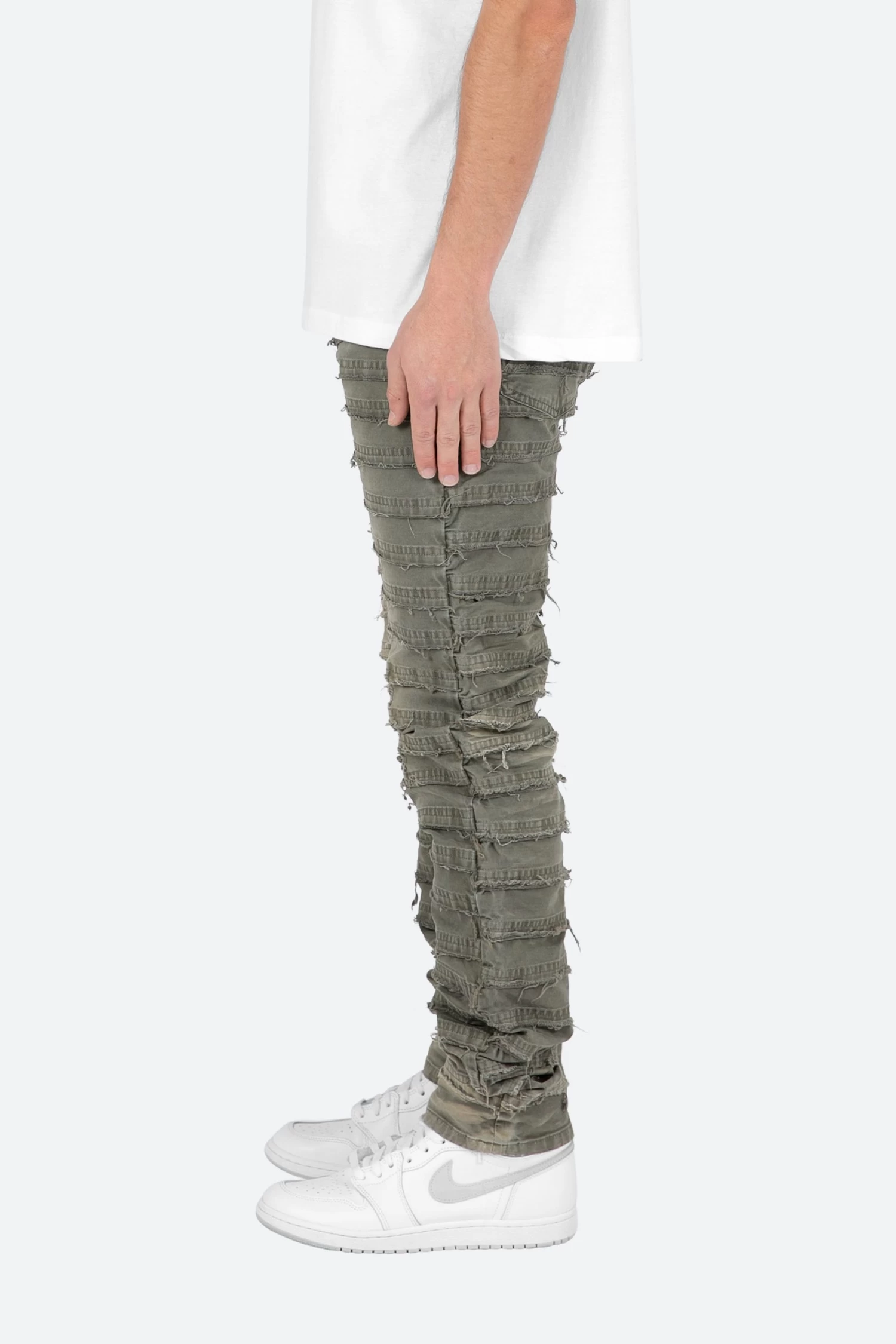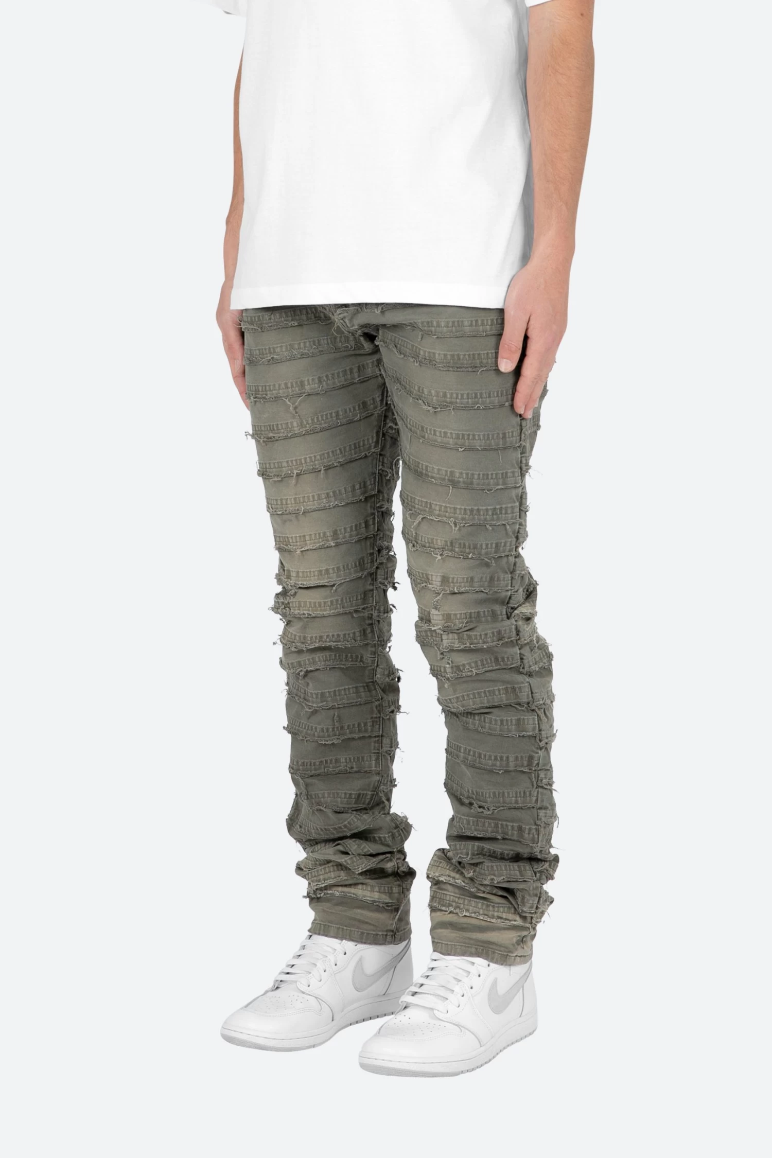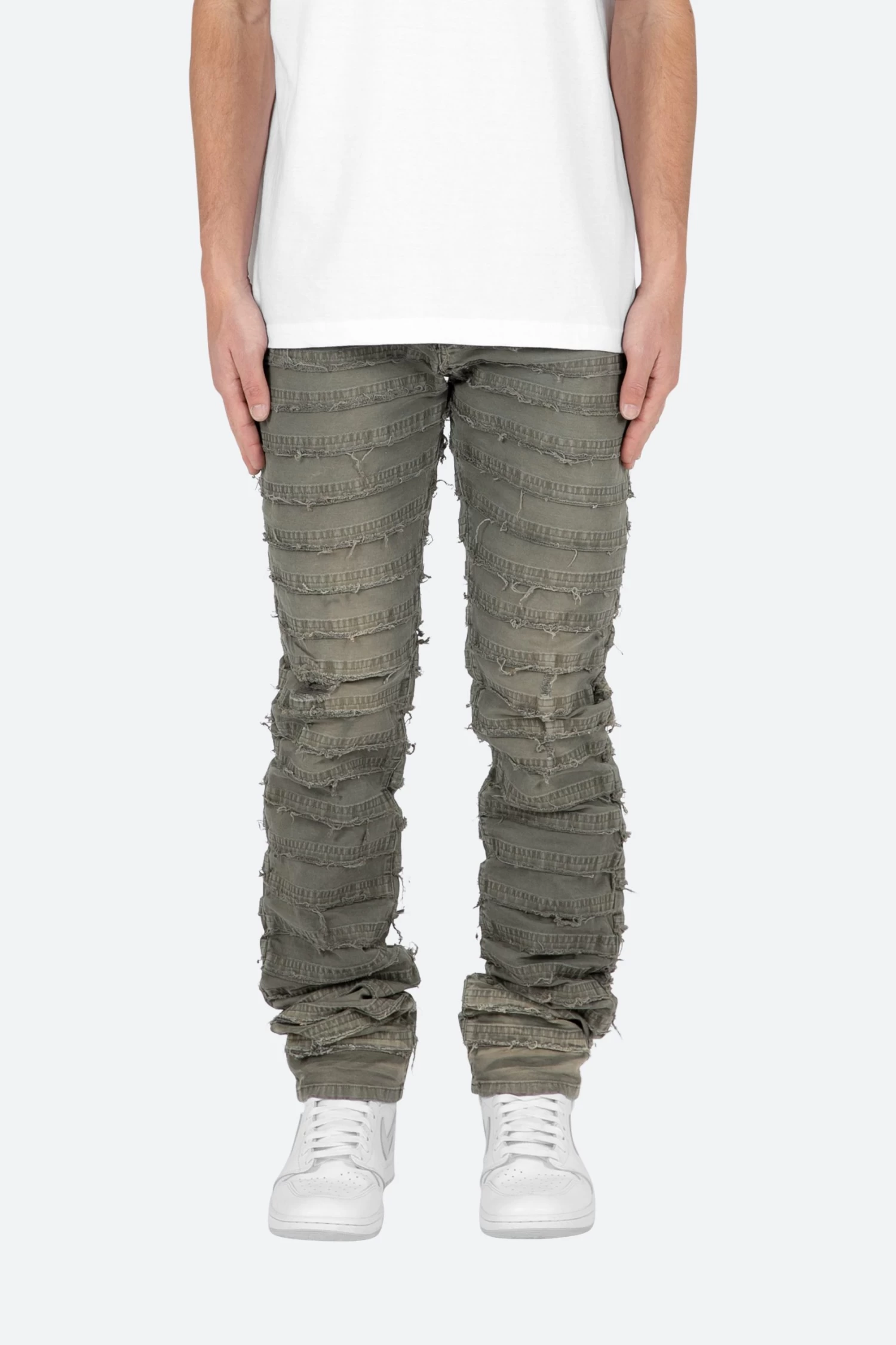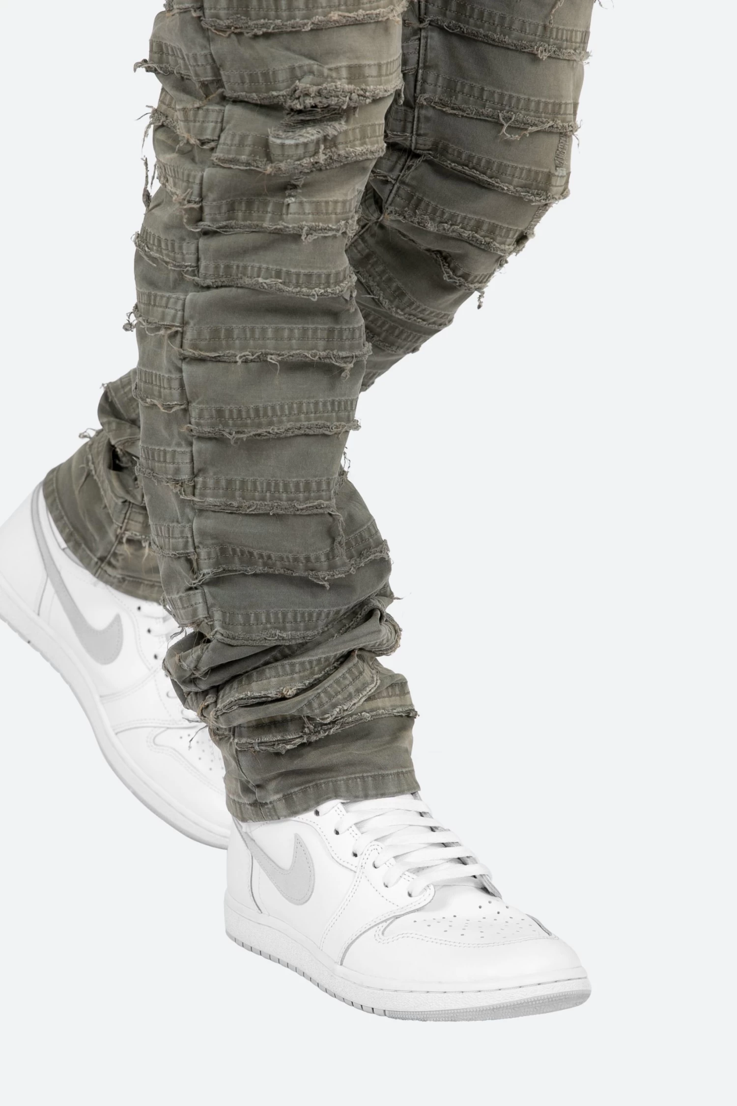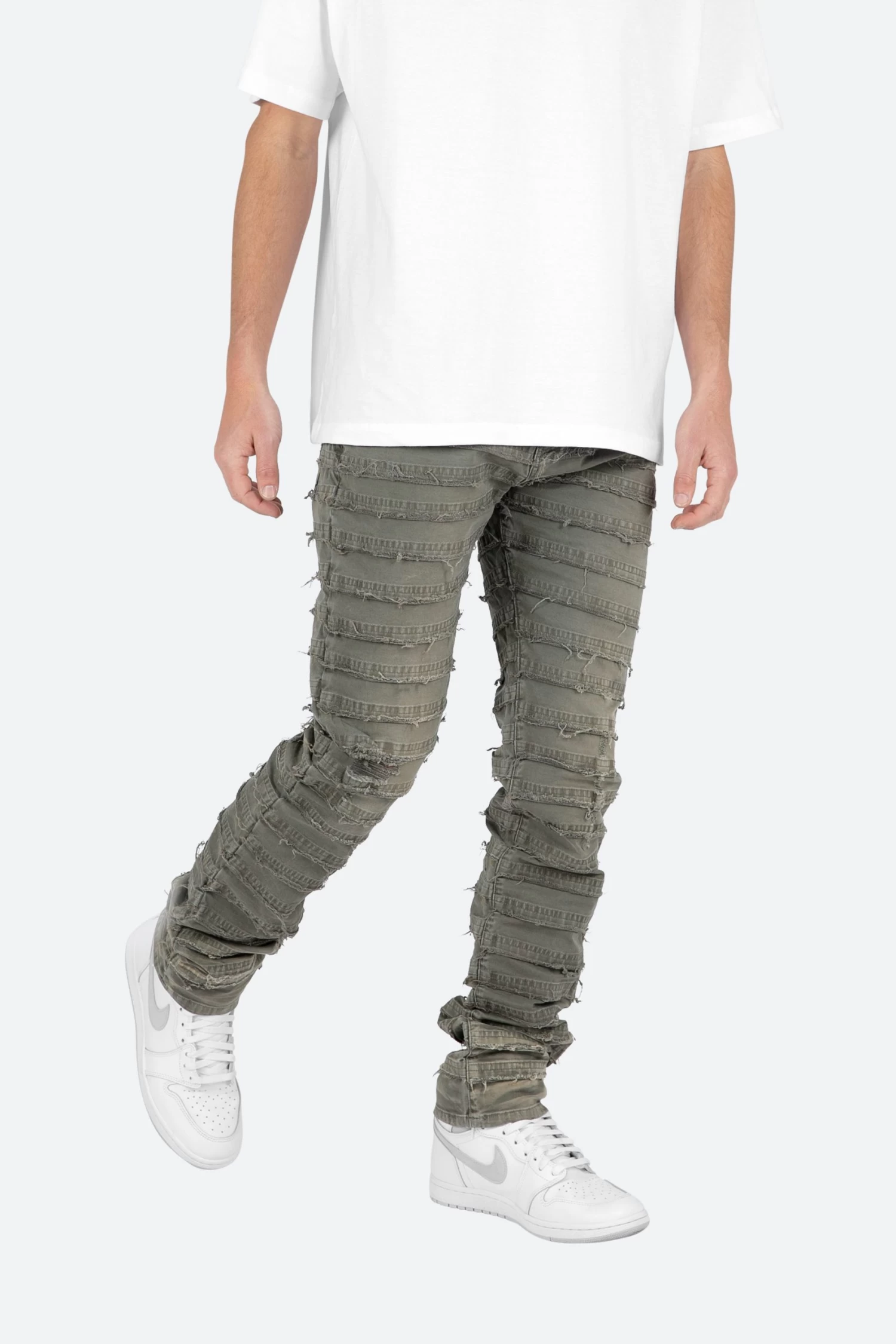 the D429 Mummy Denim is designed with our new D fit which is relaxed throughout with an extended inseam for stacking and features a warm, grey wash, and finished with paneling that is stacked with raw edges throughout.