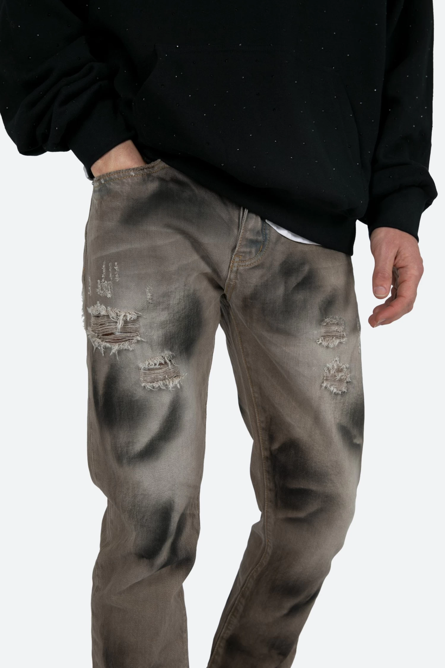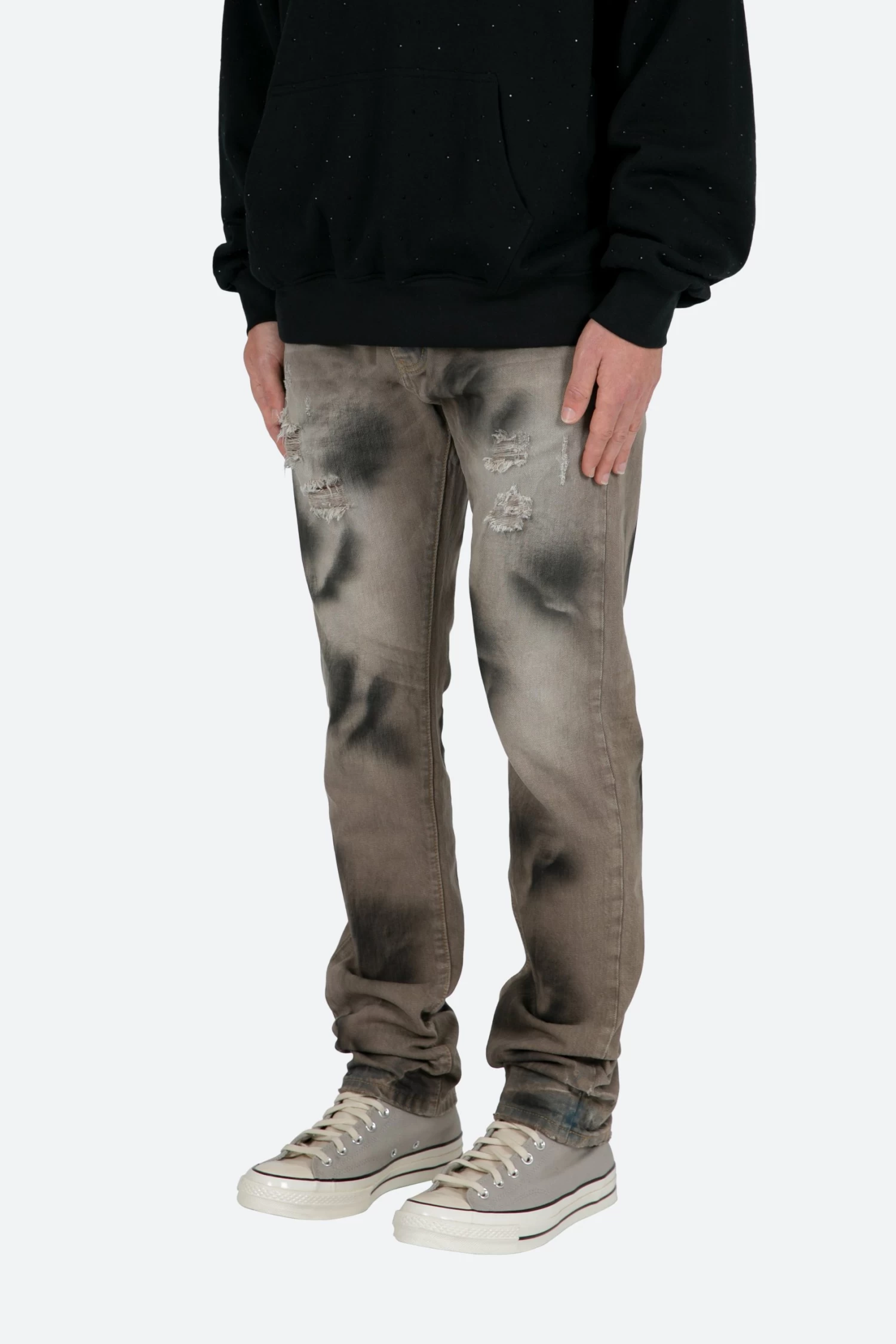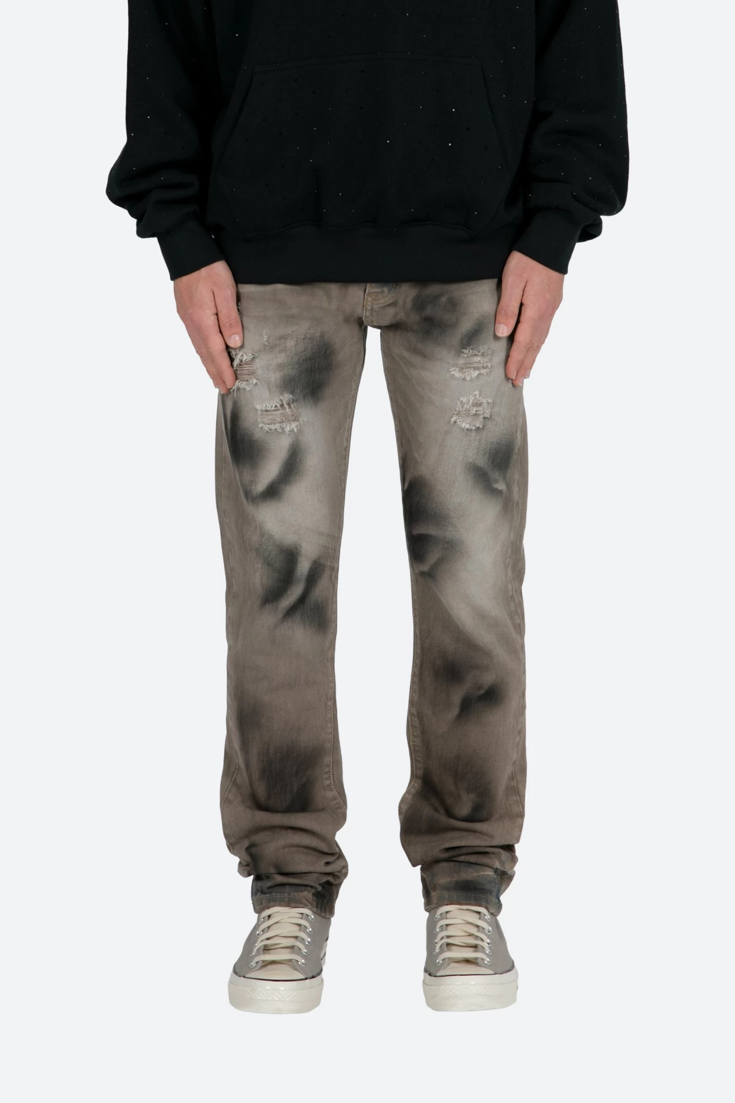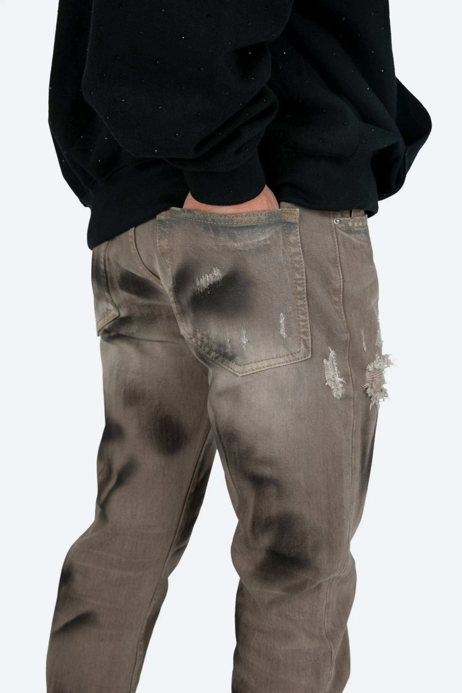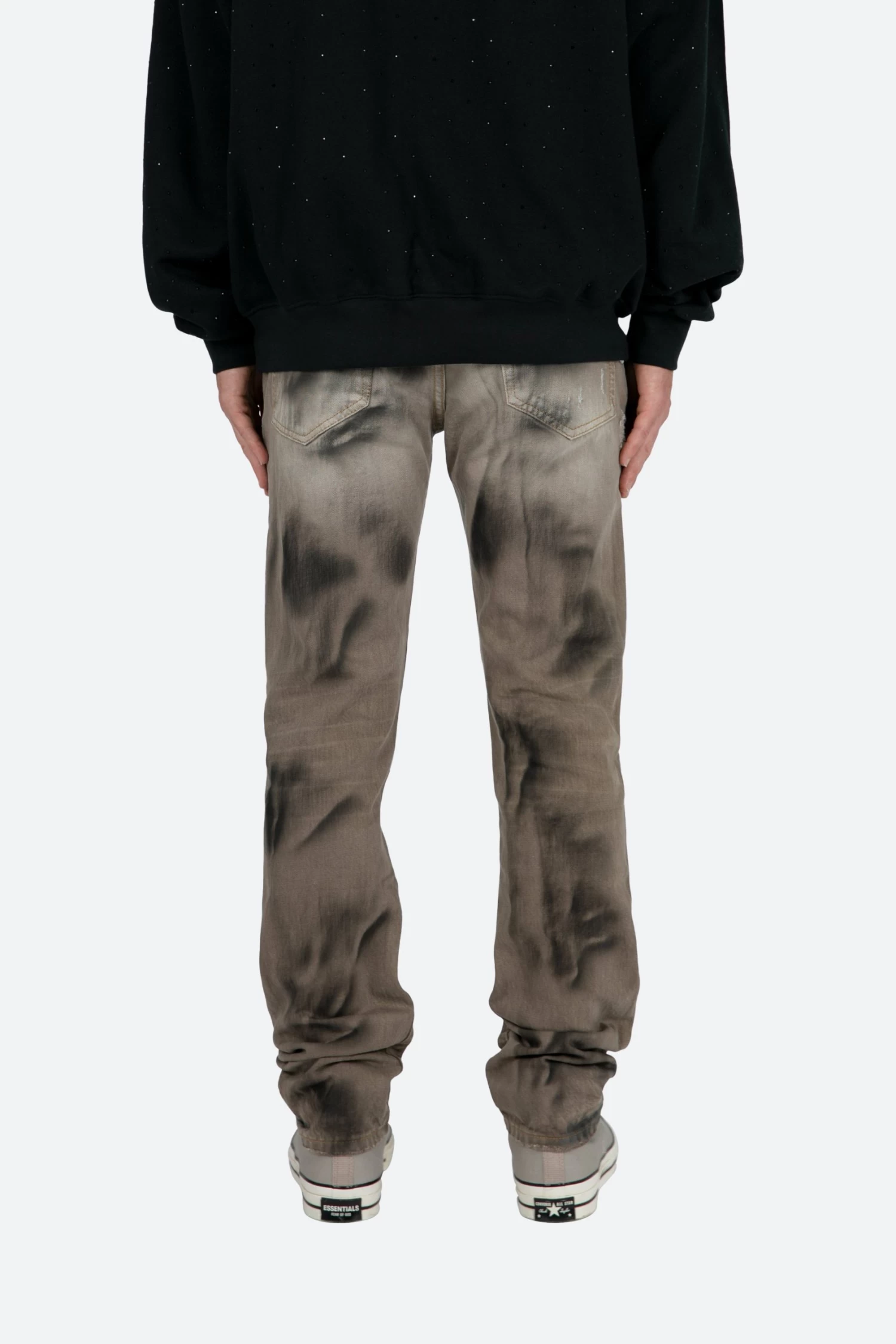 the D479 Denim is designed with our new D fit which is relaxed throughout with an extended inseam for stacking, constructed from a vintage washed black denim, distressing details throughout, whiskering and sanding throughout, and finished with black paint details throughout.