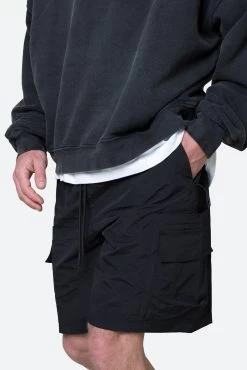 the Disrtessed Cargo Shorts are designed with a relaxed fit throughout, cargo pockets at the side seam, a button fly, , and is finished with repaired distressing details throughout.