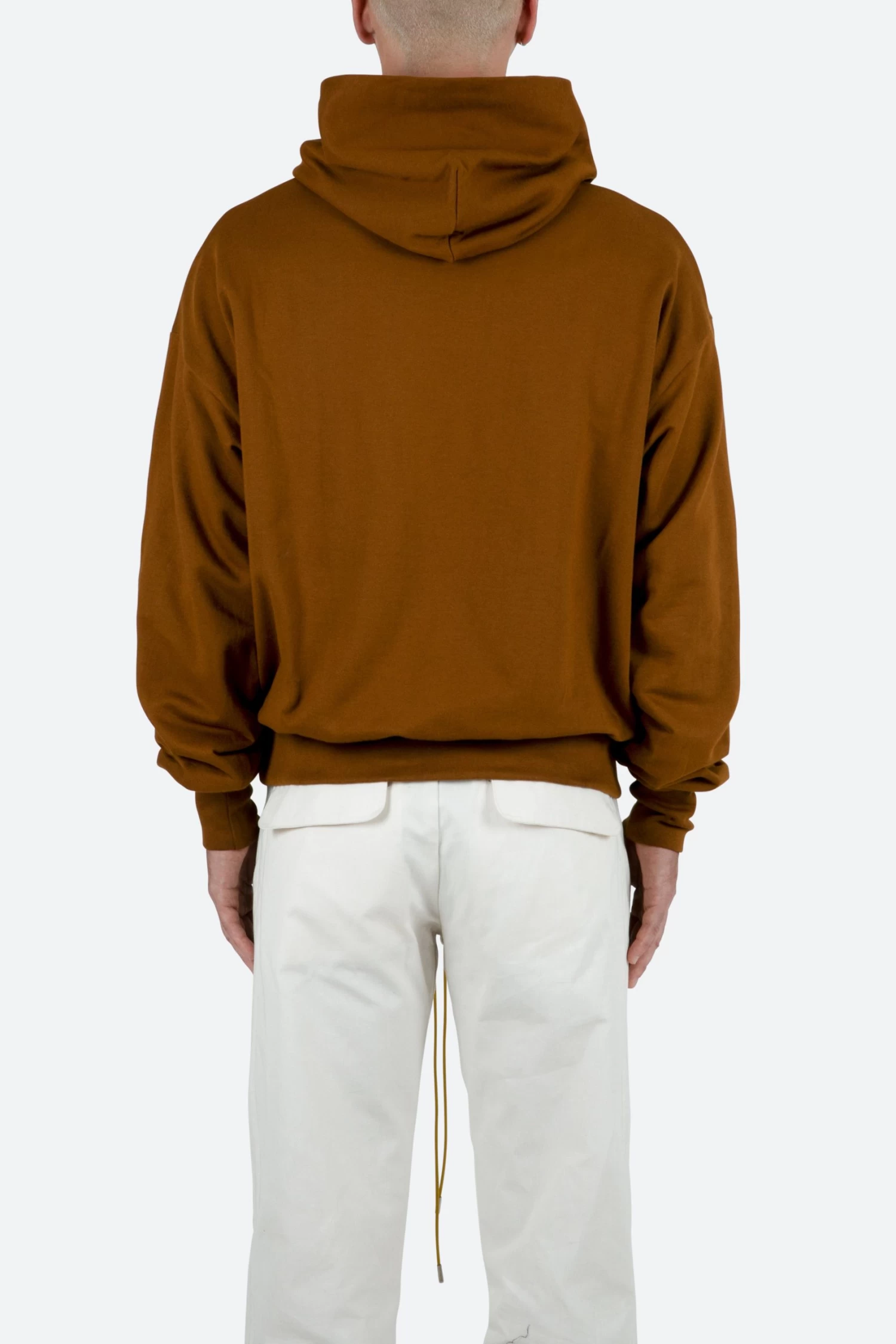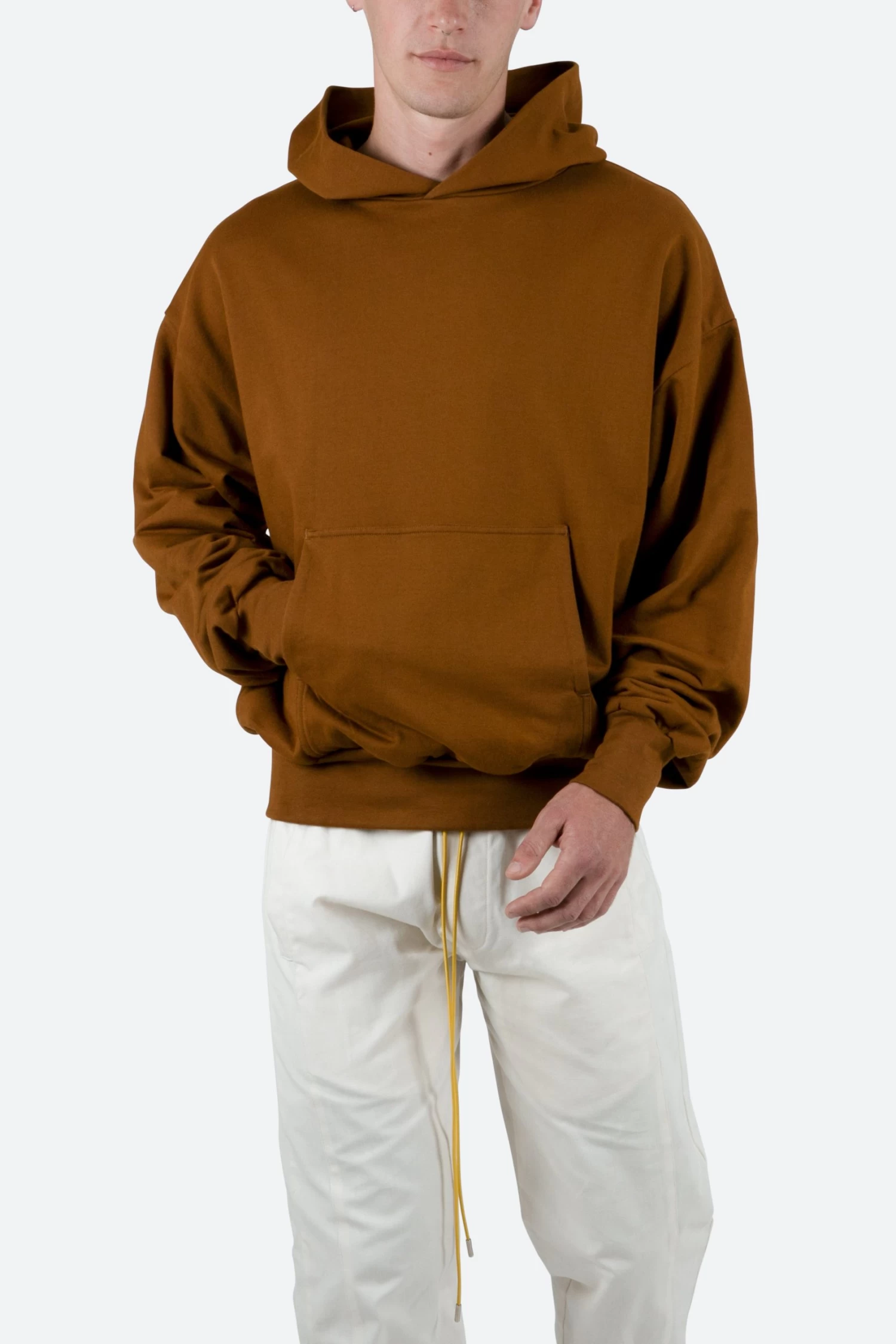 the Double Layer Hoodie features a relaxed fit with a dropped shoulder design, front pouch pocket, ribbing at the wrists and waist, and finished in both a washed and brushed double layer french terry fabric.