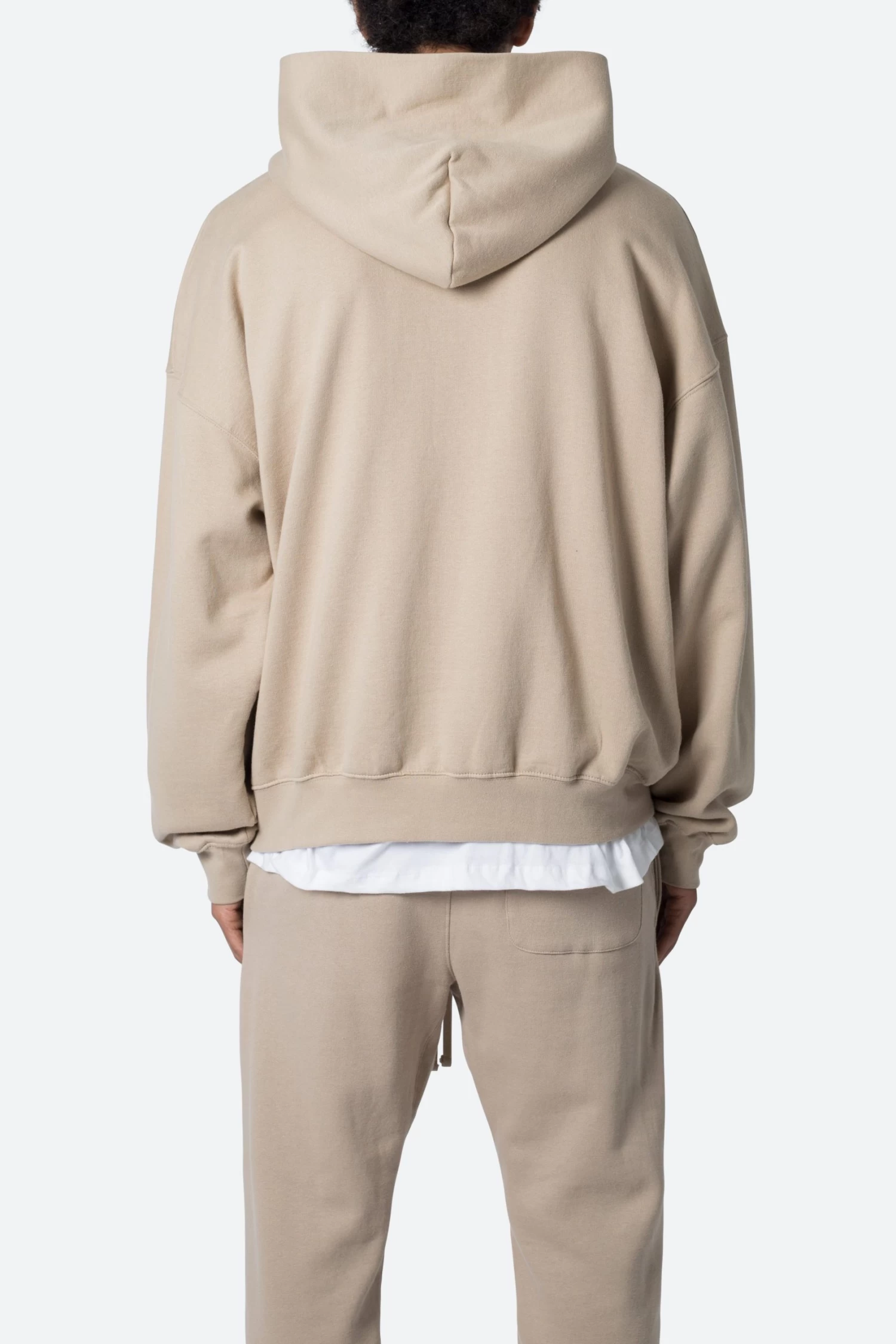 The Every Day Hoodie features a relaxed fit with a dropped shoulder design, front pouch pocket, ribbing at the wrists and waist, and finished in both a washed and brushed fleece fabric.