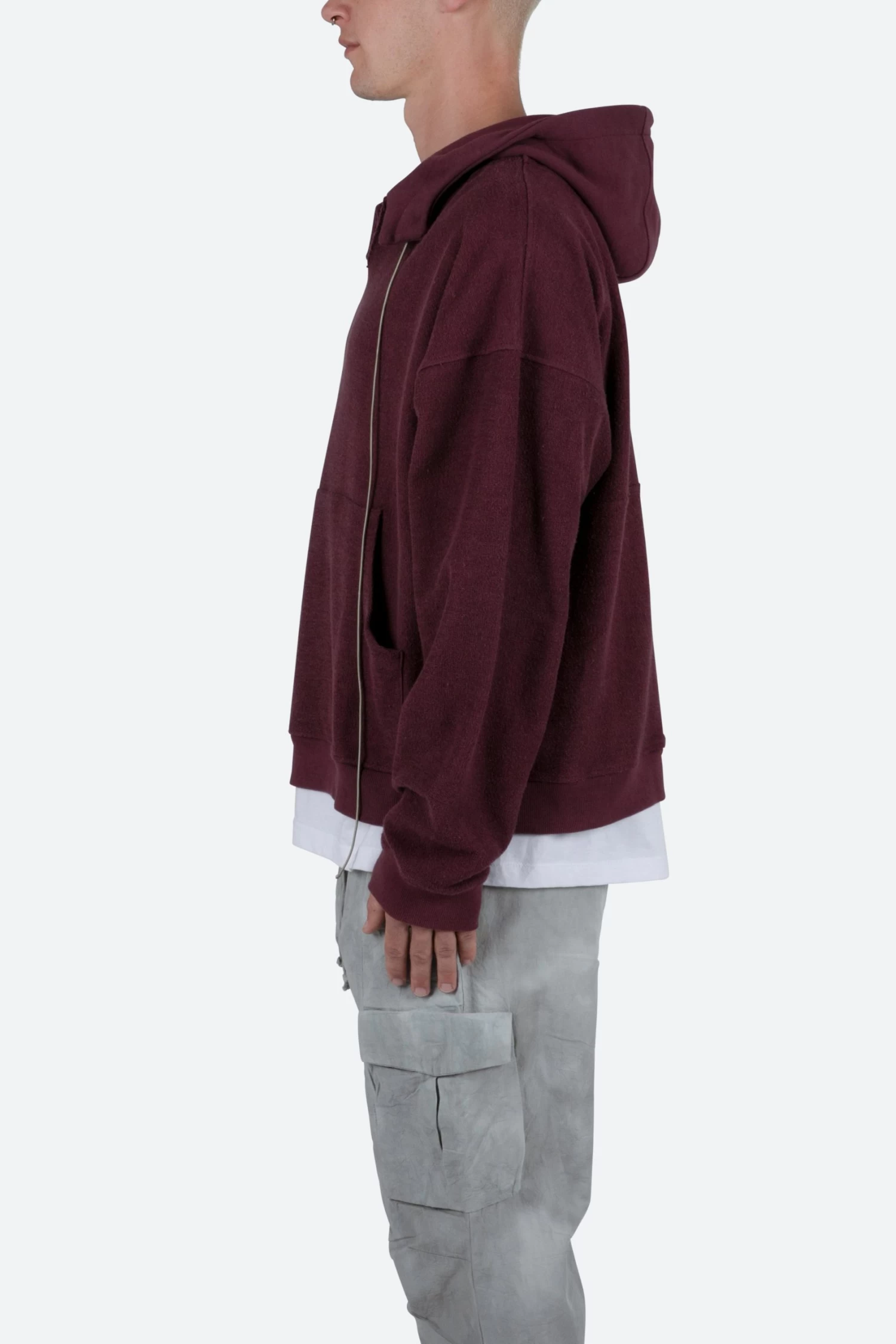 The Extended Drawcord Hoodie features a relaxed fit with a dropped shoulder design, front pouch pocket, ribbing at the wrists and waist, a cut neck opening, extended drawcord, and finished in both a washed and brushed fleece fabric.