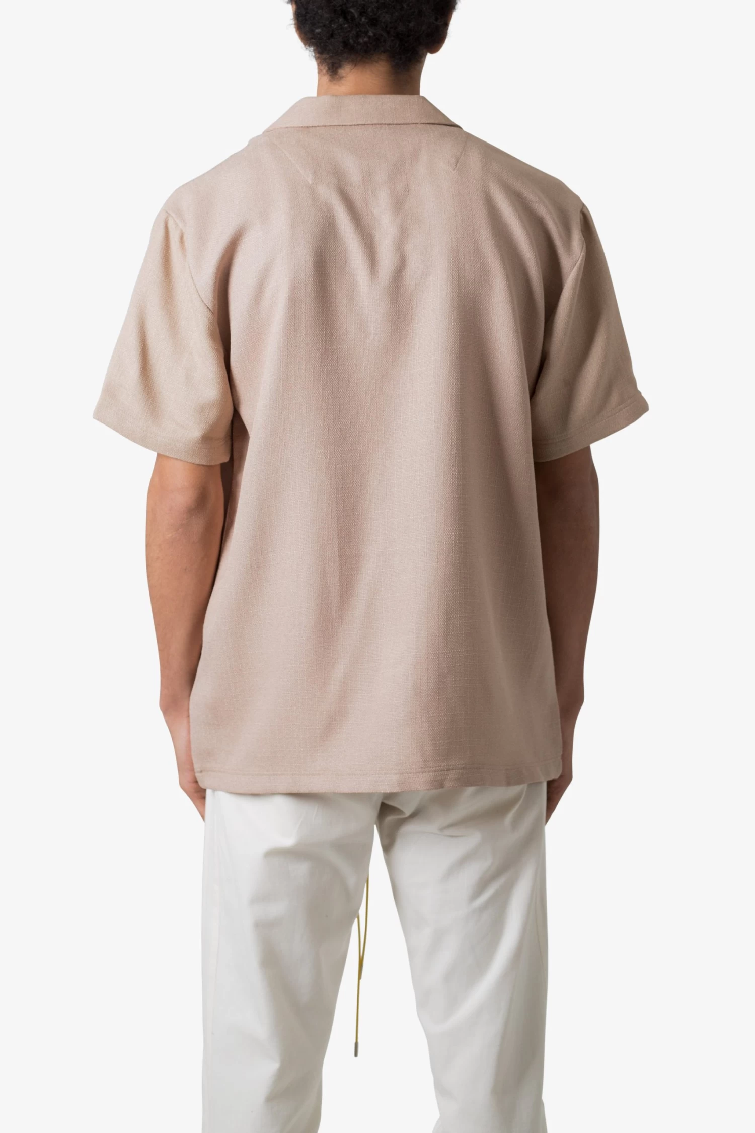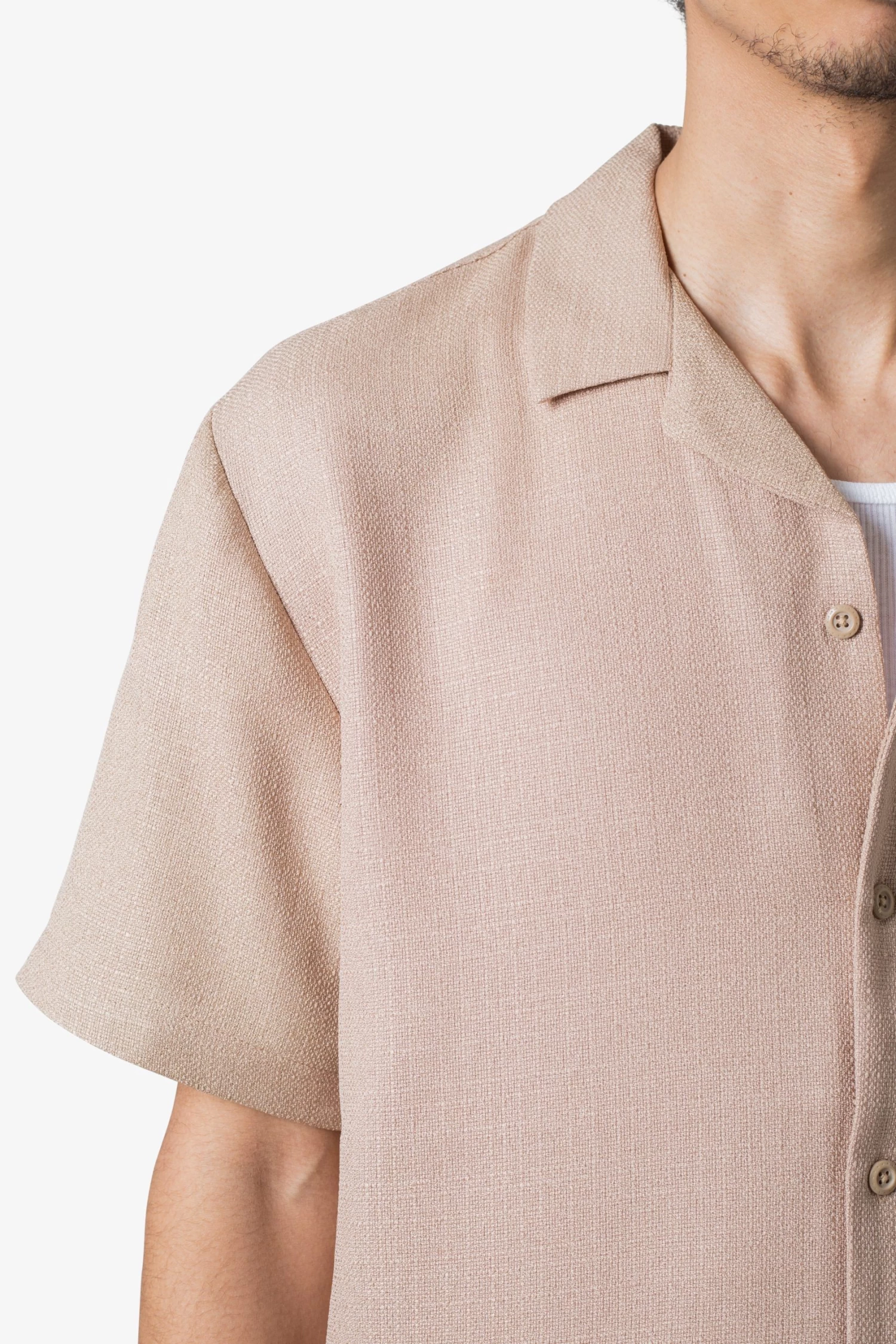 the Linen Blend S/S Shirt is made from a linen weaved cotton fabric with a garment wash. The relaxed-fit shirt features tonal buttons, flat hem, and finished in a relaxed fit.