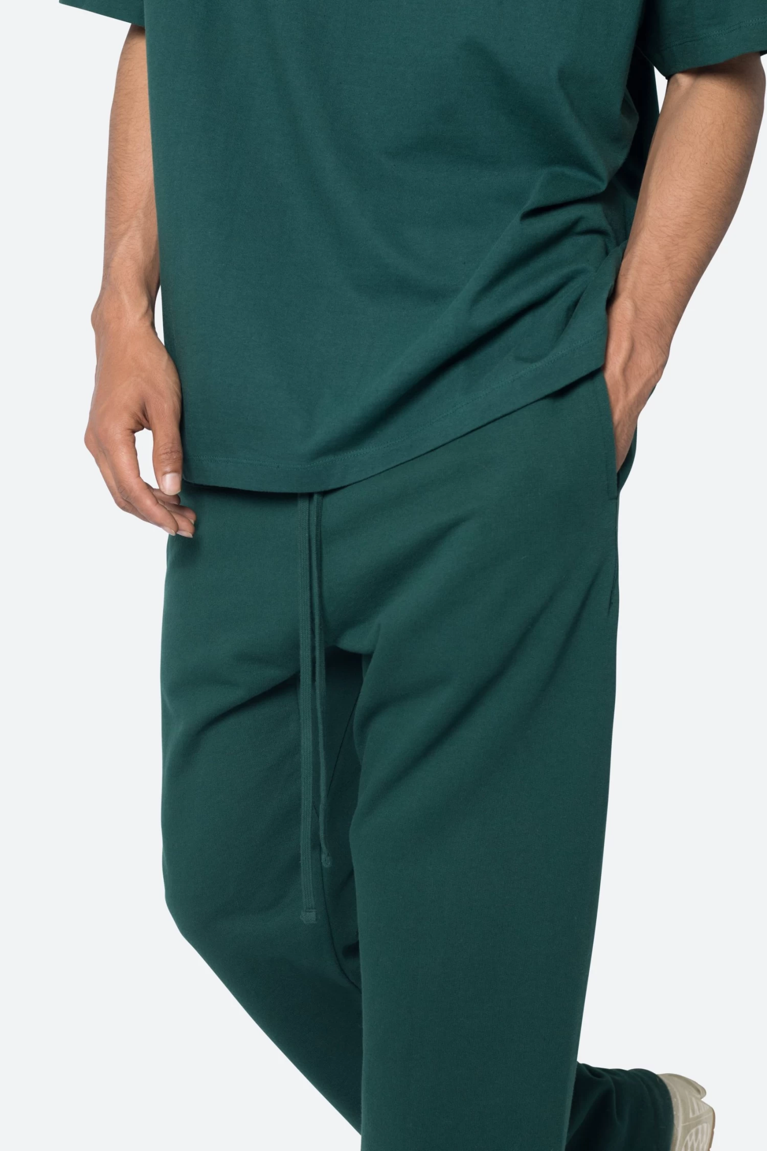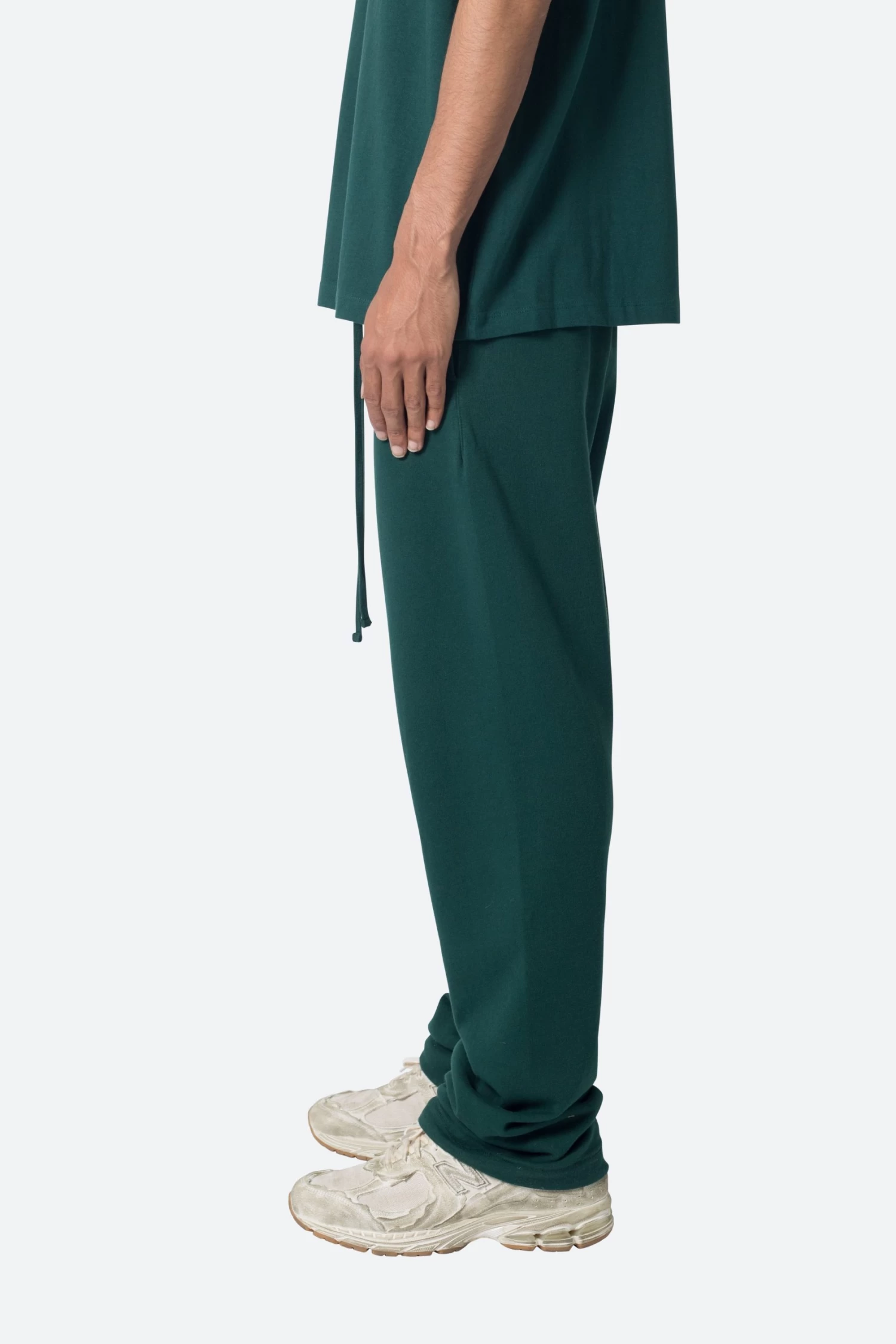 the Relaxed Every Day Sweatpants are designed with a relaxed fit throughout, featuring an elasticized self waist, tonal cotton drawstrings, standard hem at the leg opening, and finished in both a washed and brushed fleece fabric.