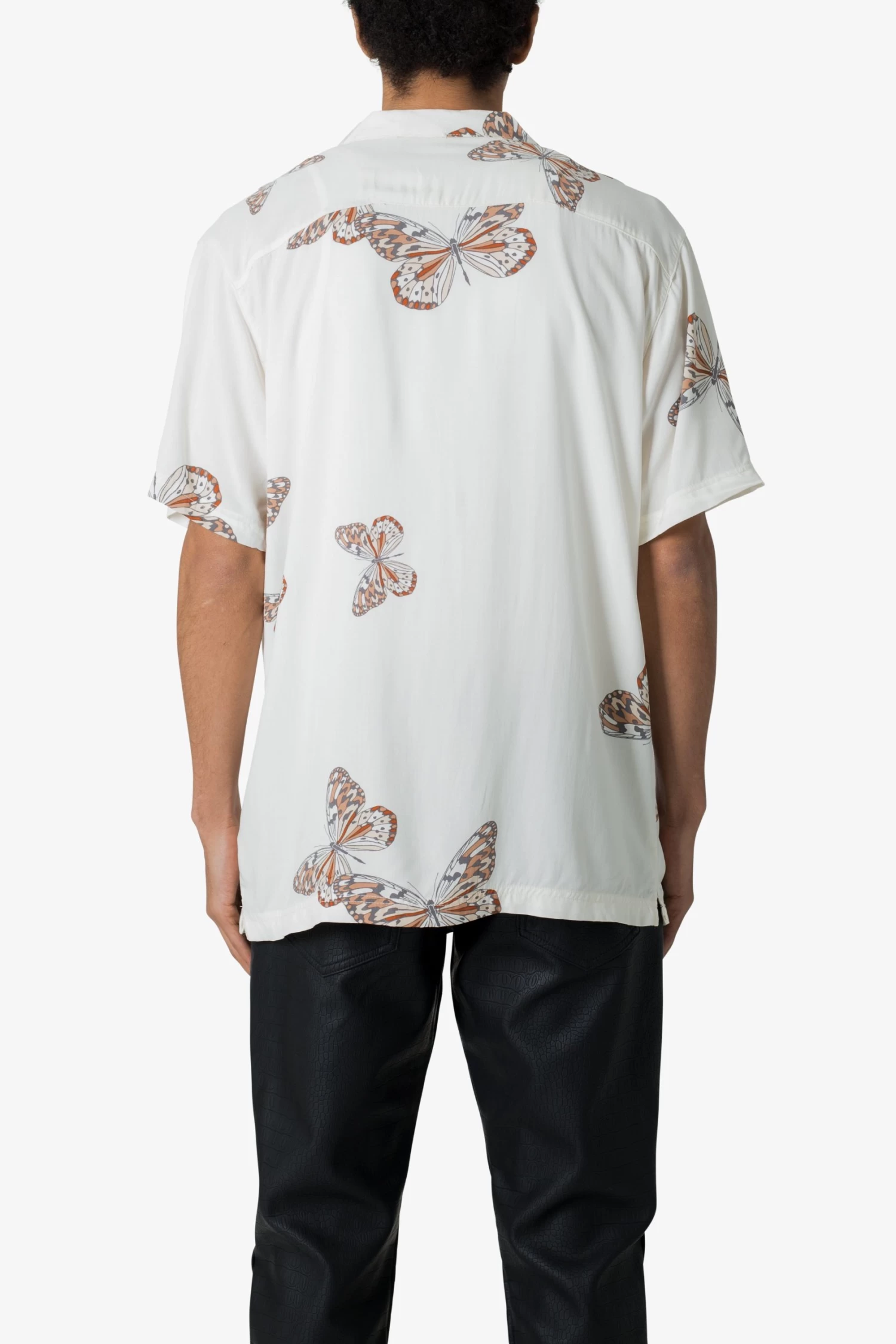 the S/S Button Up Shirt is made from a viscose fabric with an all-over butterfly print. The relaxed-fit shirt features tonal buttons, flat hem, and finished in a relaxed fit.