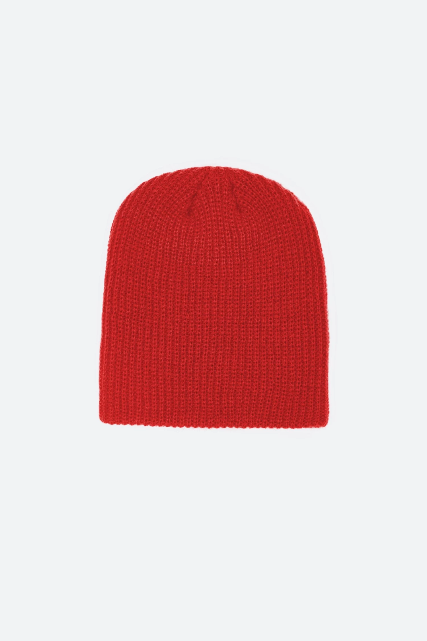 the Short Beanie is constructed from acrylic and features a ribbed knit with a 8″ length.