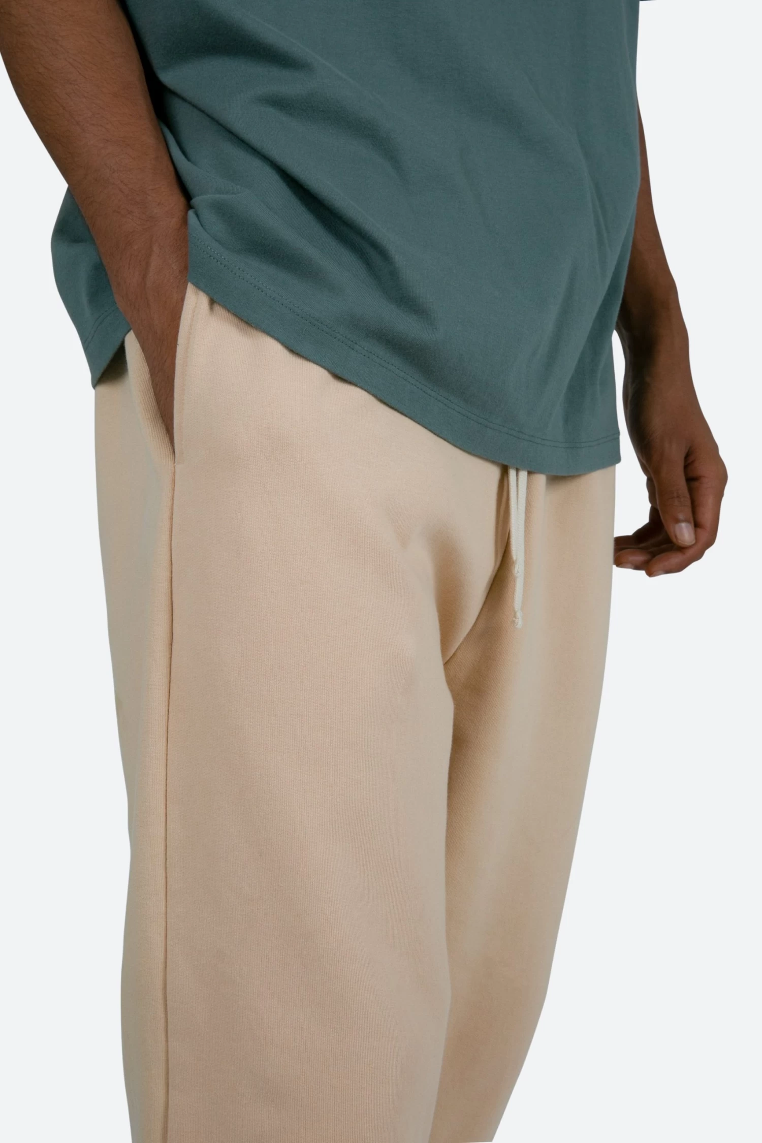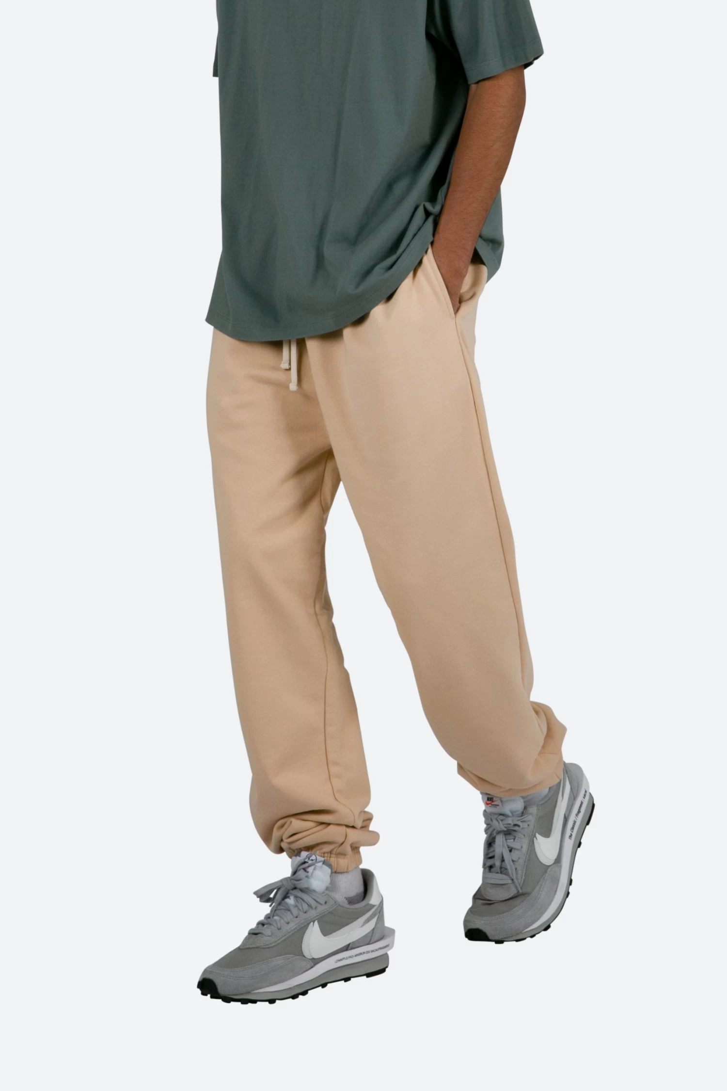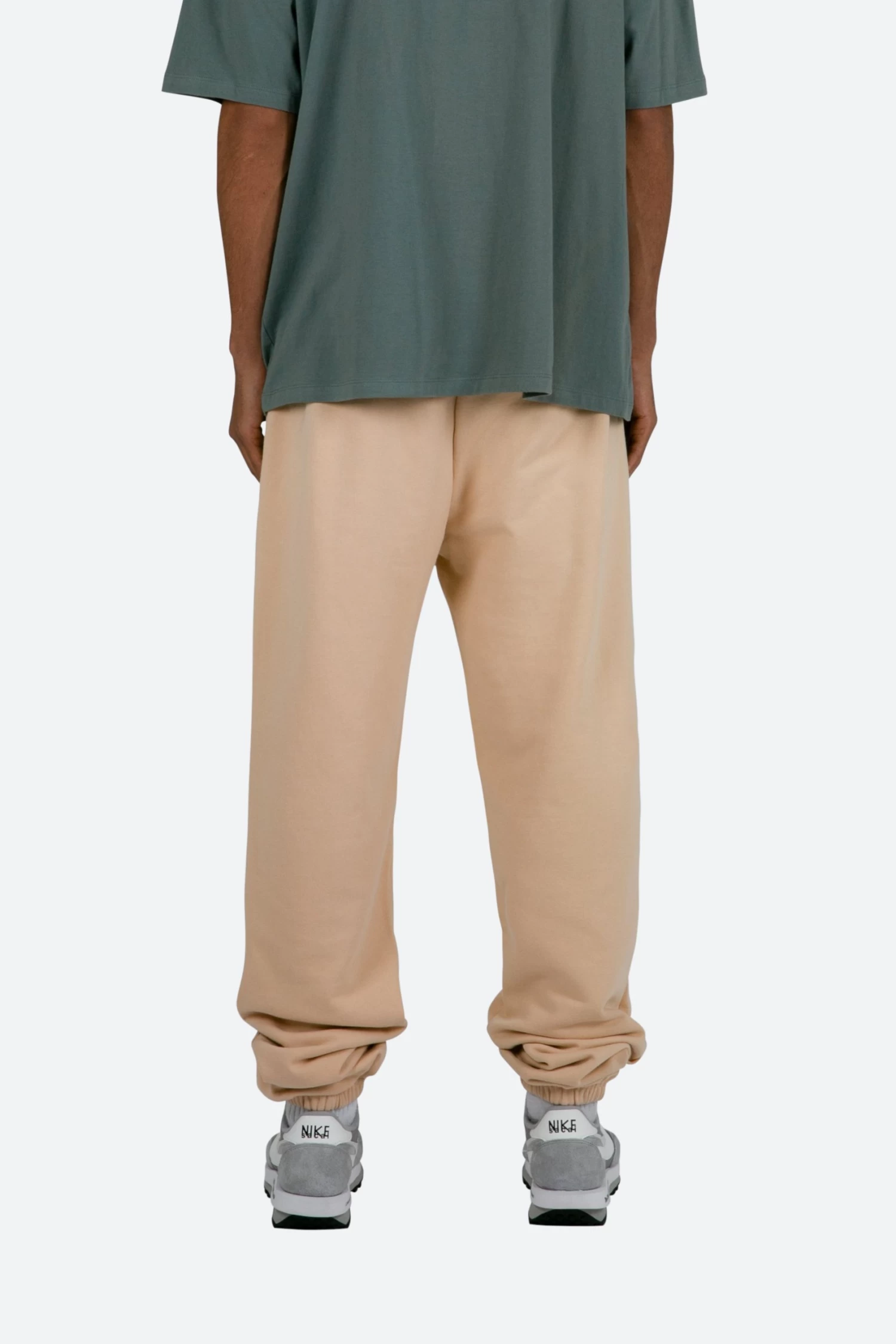 the Slouch Sweatpants are designed with a relaxed fit throughout, featuring an elasticized self waist and leg opening, internal cotton drawstrings, and finished in both a washed and brushed french terry fabric.