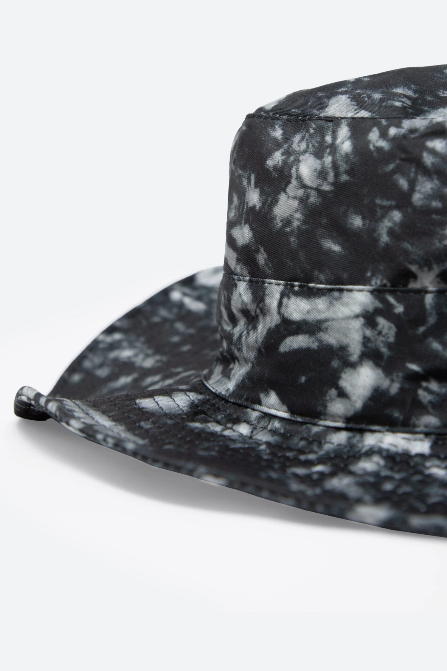 the Tie Dye Bucket Hat is constructed from tie dye printed polyester fabric, banding around the crown, and finished with stitching on the brim for improved structure.