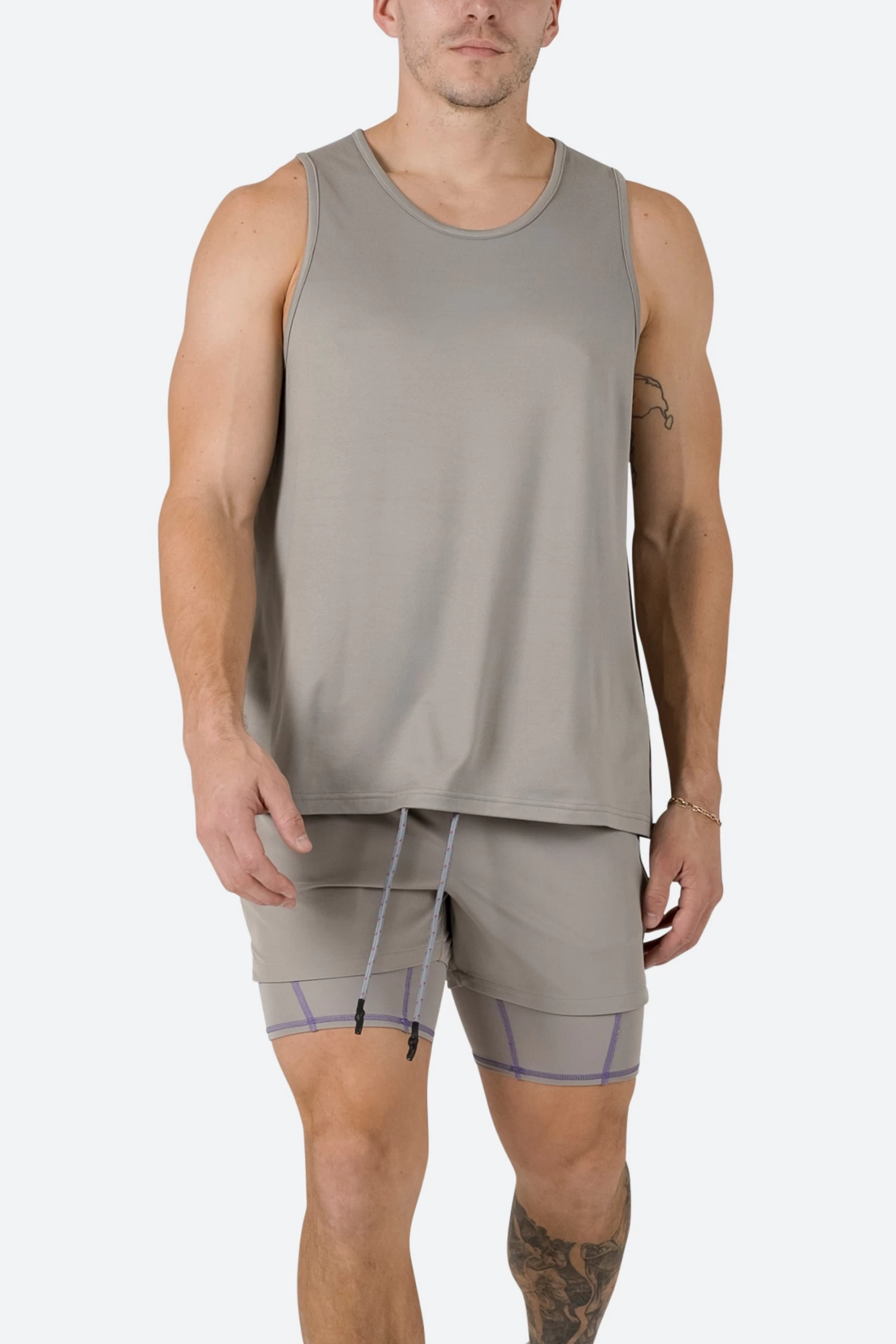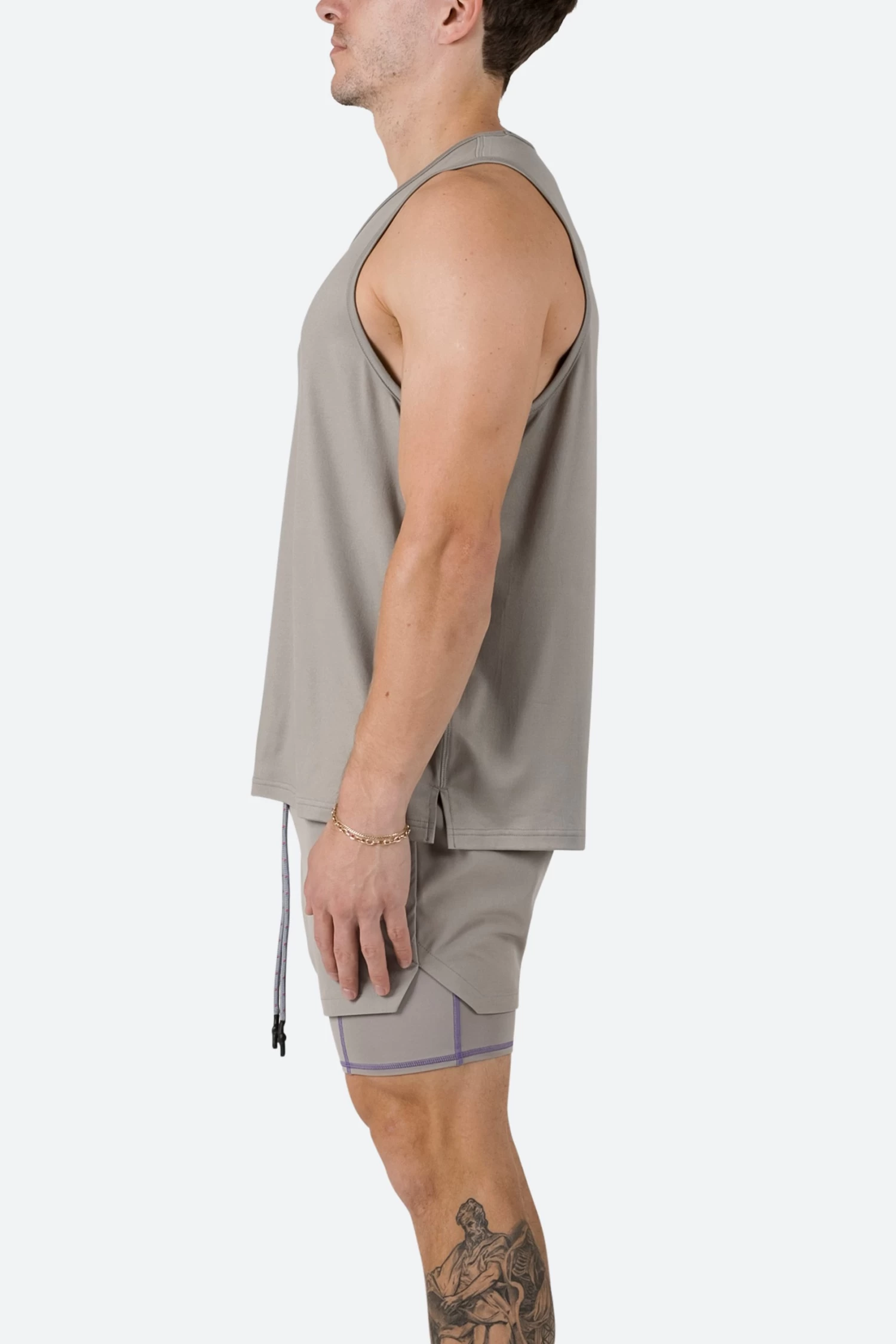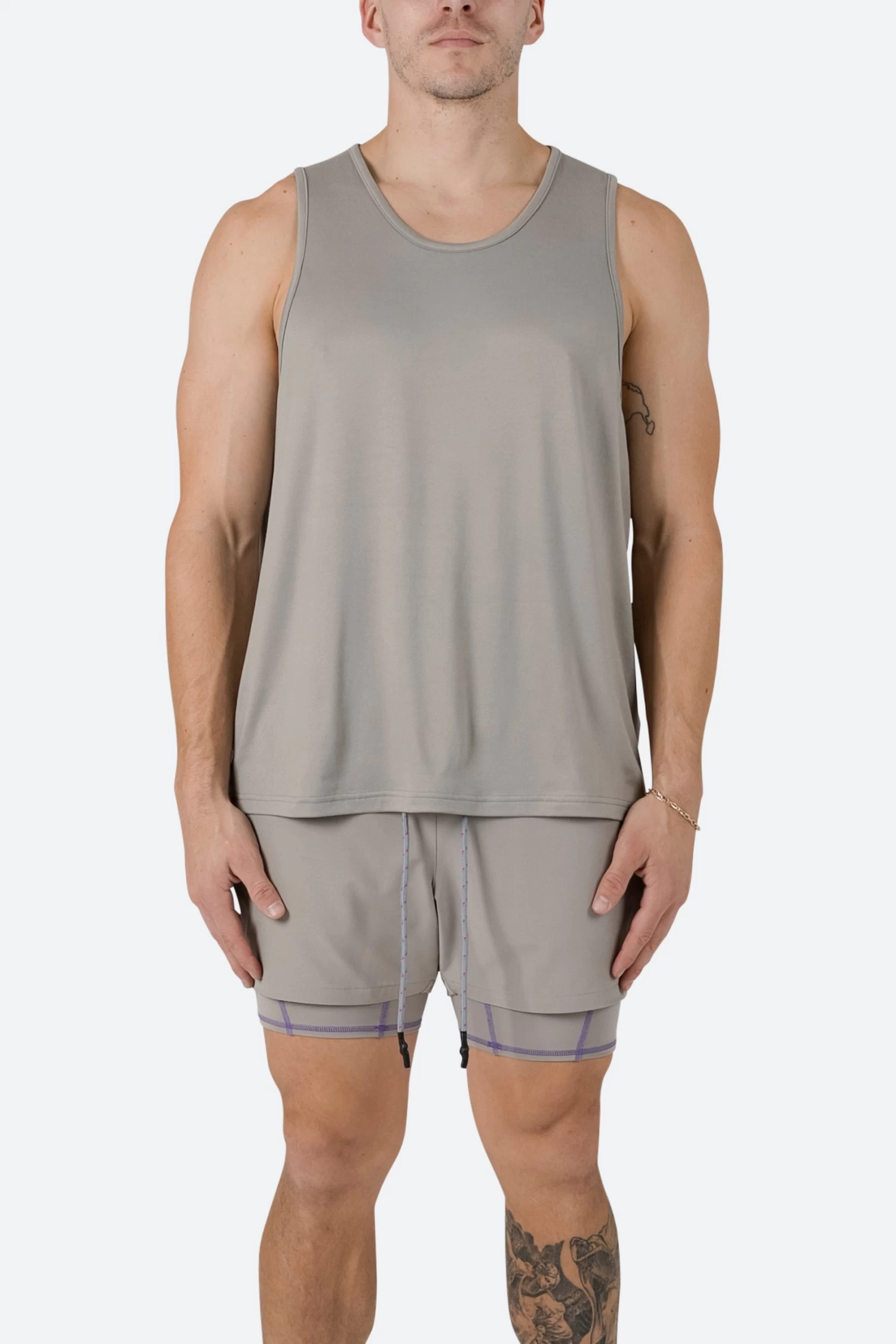 the Training Tank is constructed from a soft touch 4-way stretch fabric in a relaxed fit with self-taped seams at the neck and arm opening for comfort and stretch
