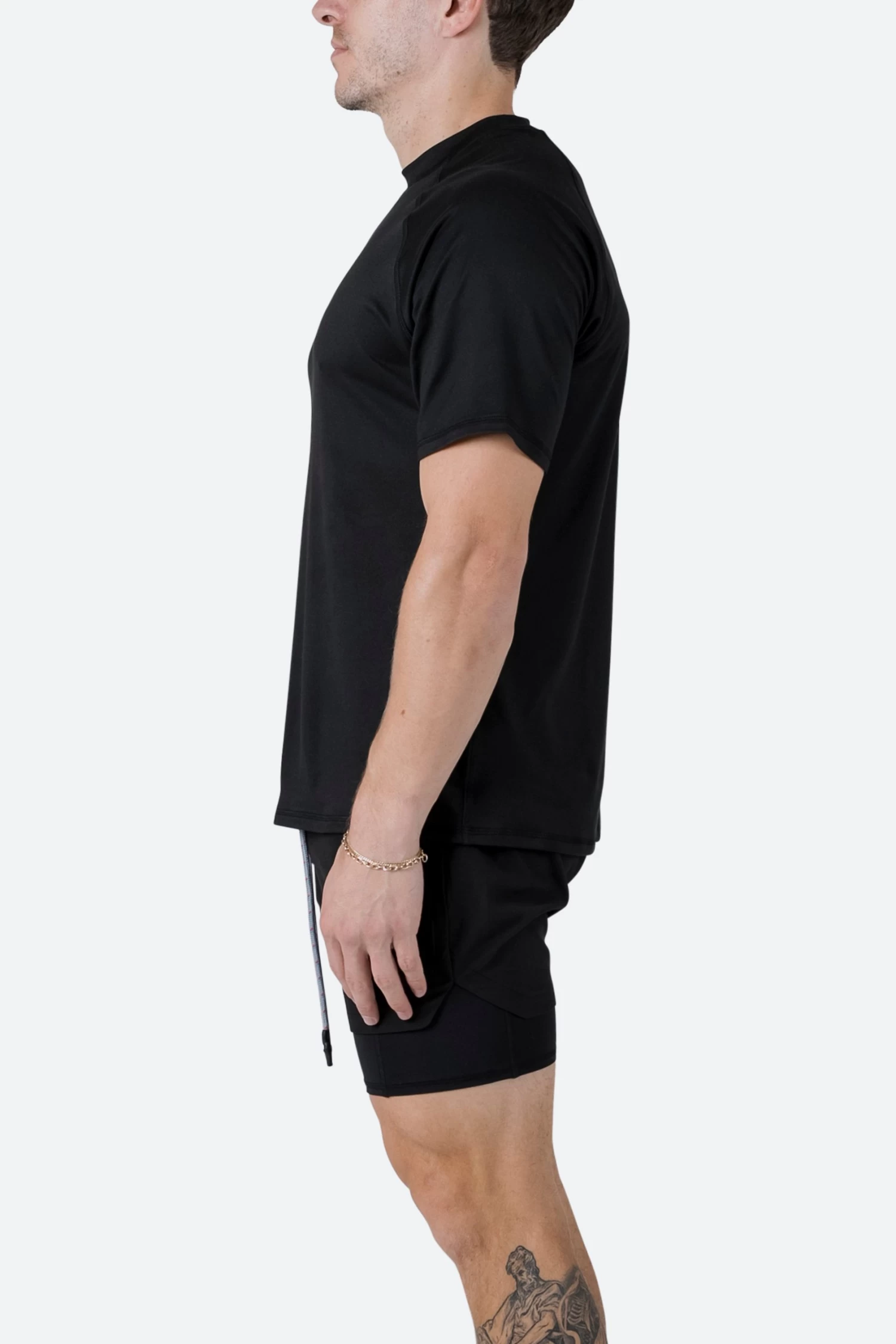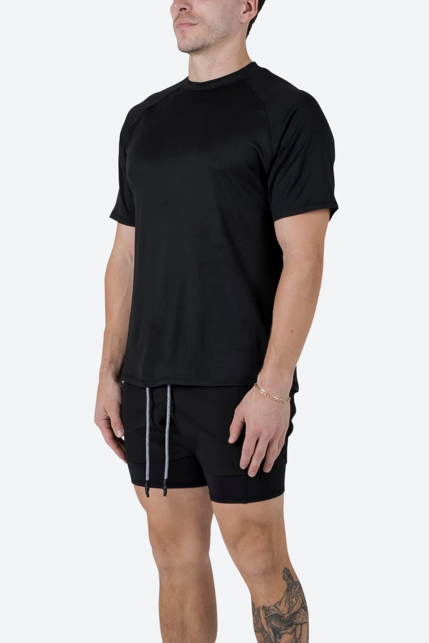 the Training Tee is constructed from a soft touch 4-way stretch fabric in a relaxed fit with a high ribbed neckline and raglan sleeves.