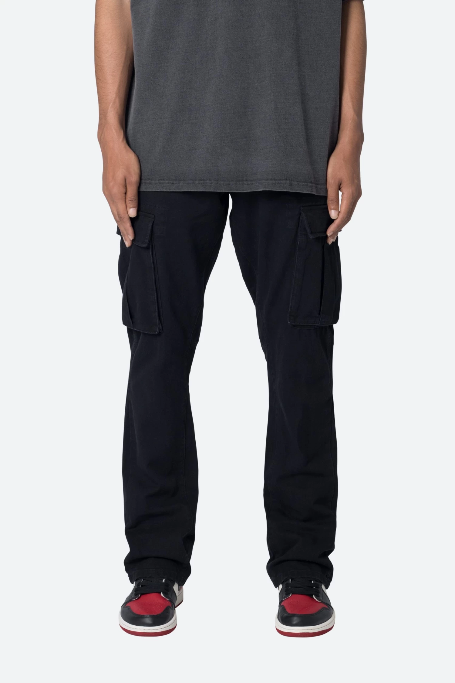 the Twill Flare Cargo Pants are designed with our new B fit, which is slim through the thigh and features a slight flare at the leg opening and is constructed from washed twill, panelling at the inseam and outseam for a slight flare, cargo pockets at the outseam, and finished with a deconstructed hem.