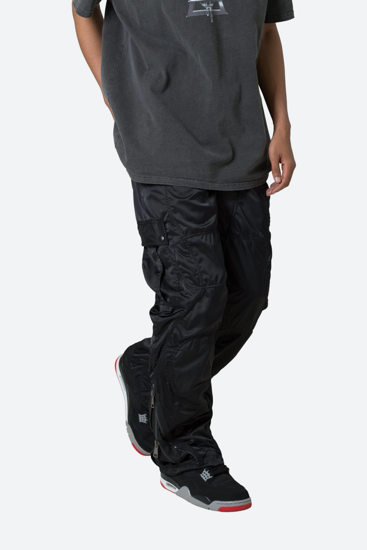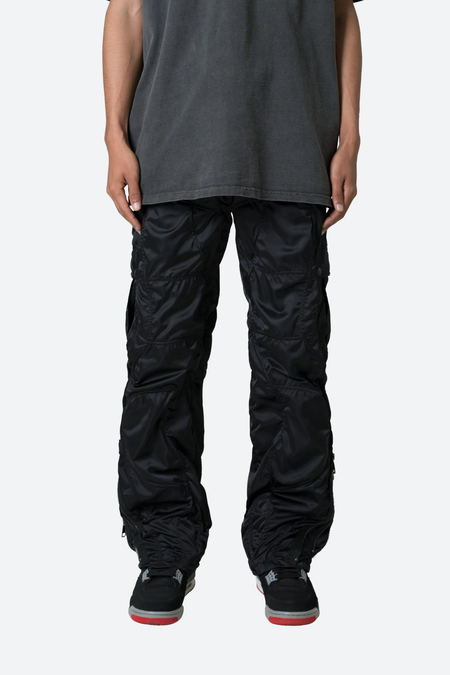 the Wired Cargo Pants are designed with a relaxed fit throughout with cargo pockets at the side seam, welt pockets at the hip, zipper pockets at the waist, double layer zipper closures at the outside leg opening, and finished with integrated wire details.