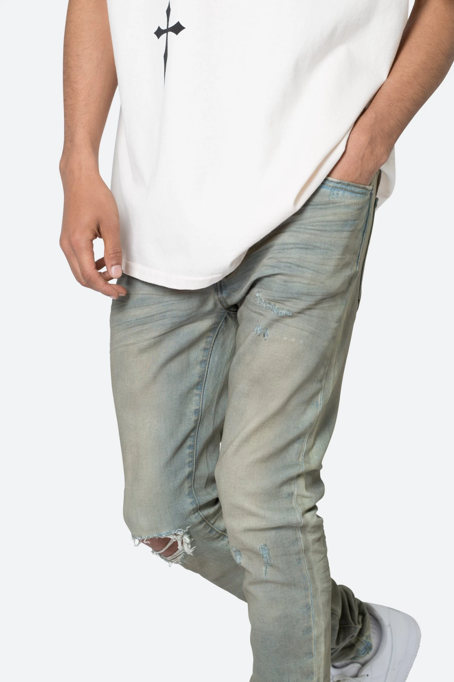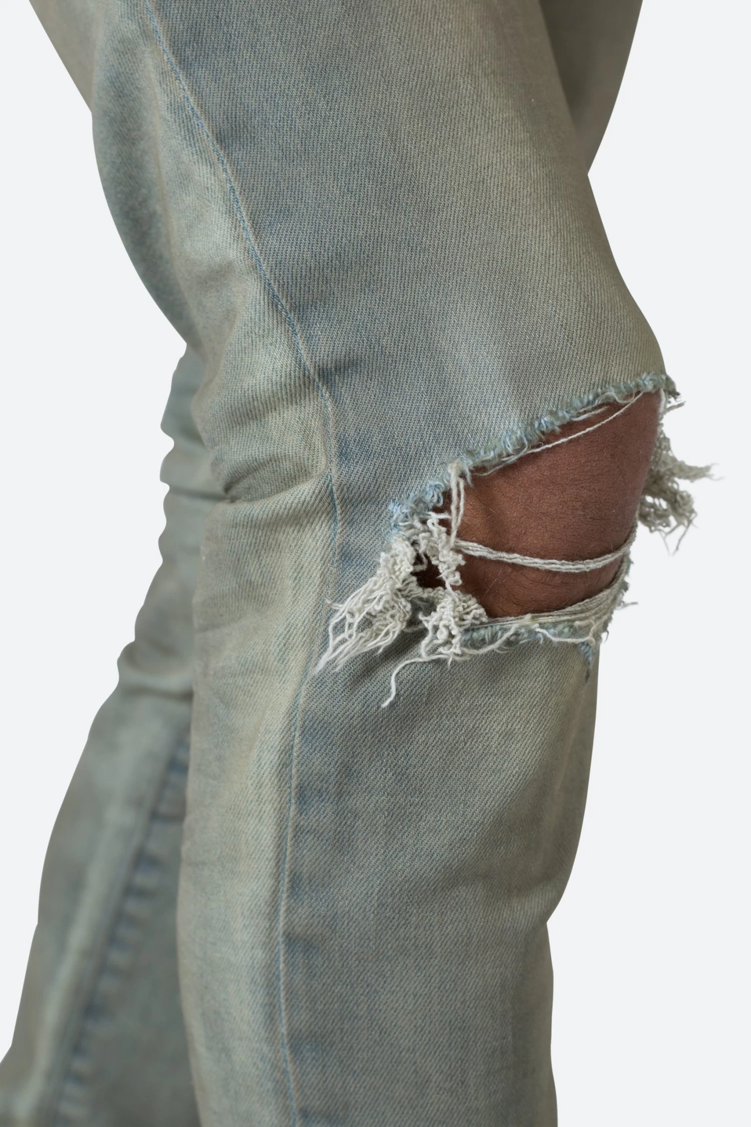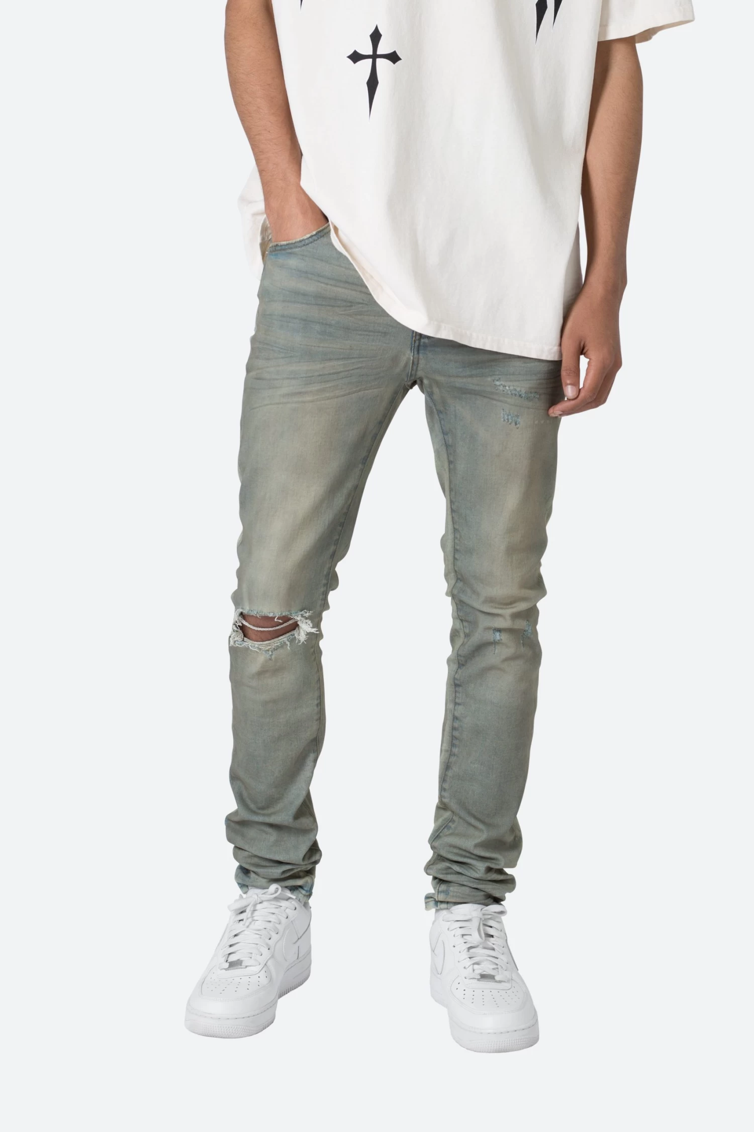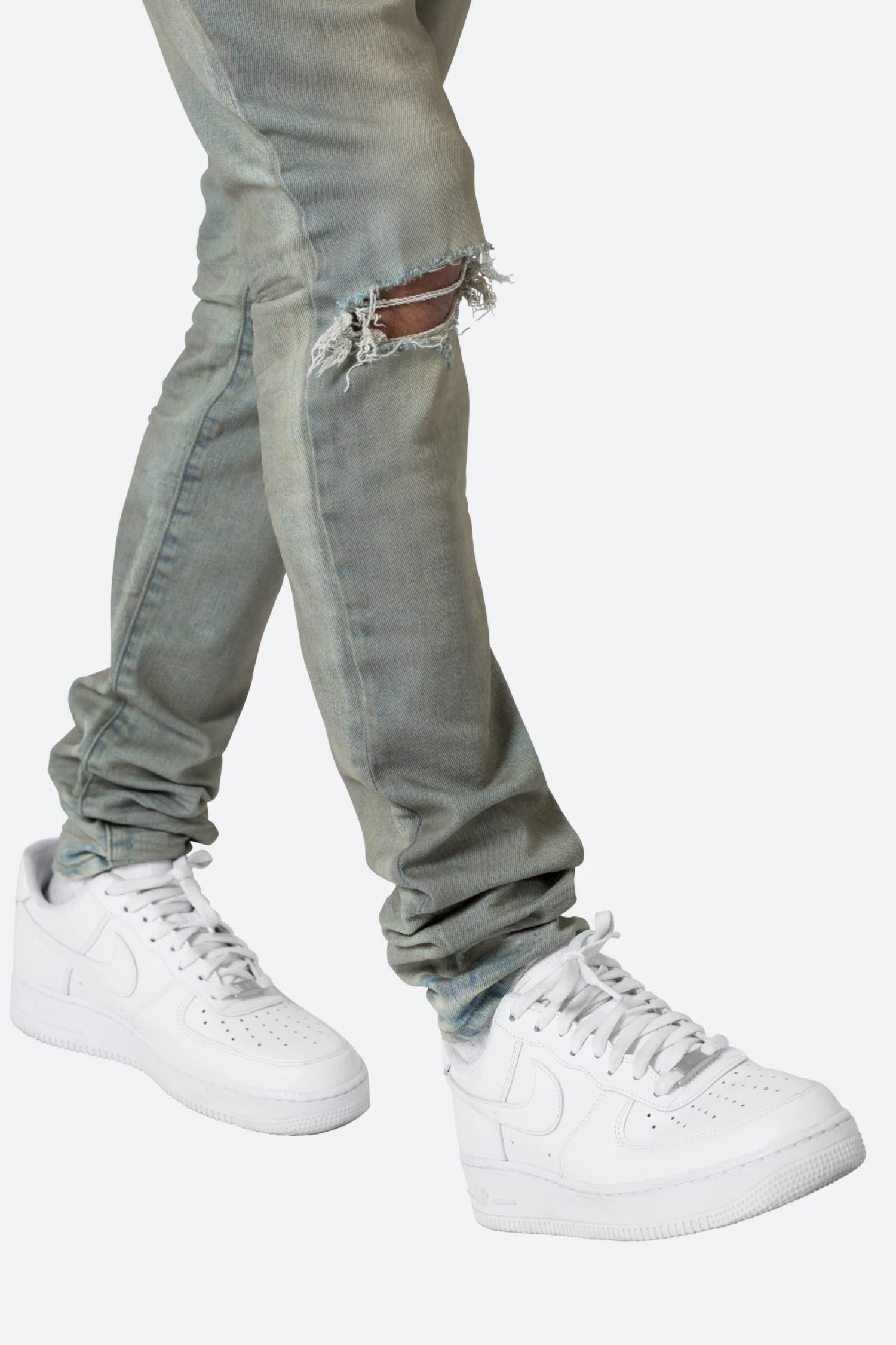 the X511 Skinny Denim is designed with our new X fit which is skinny throughout with an extended inseam for stacking, and features a light blue wash and custom distressing at the knees.