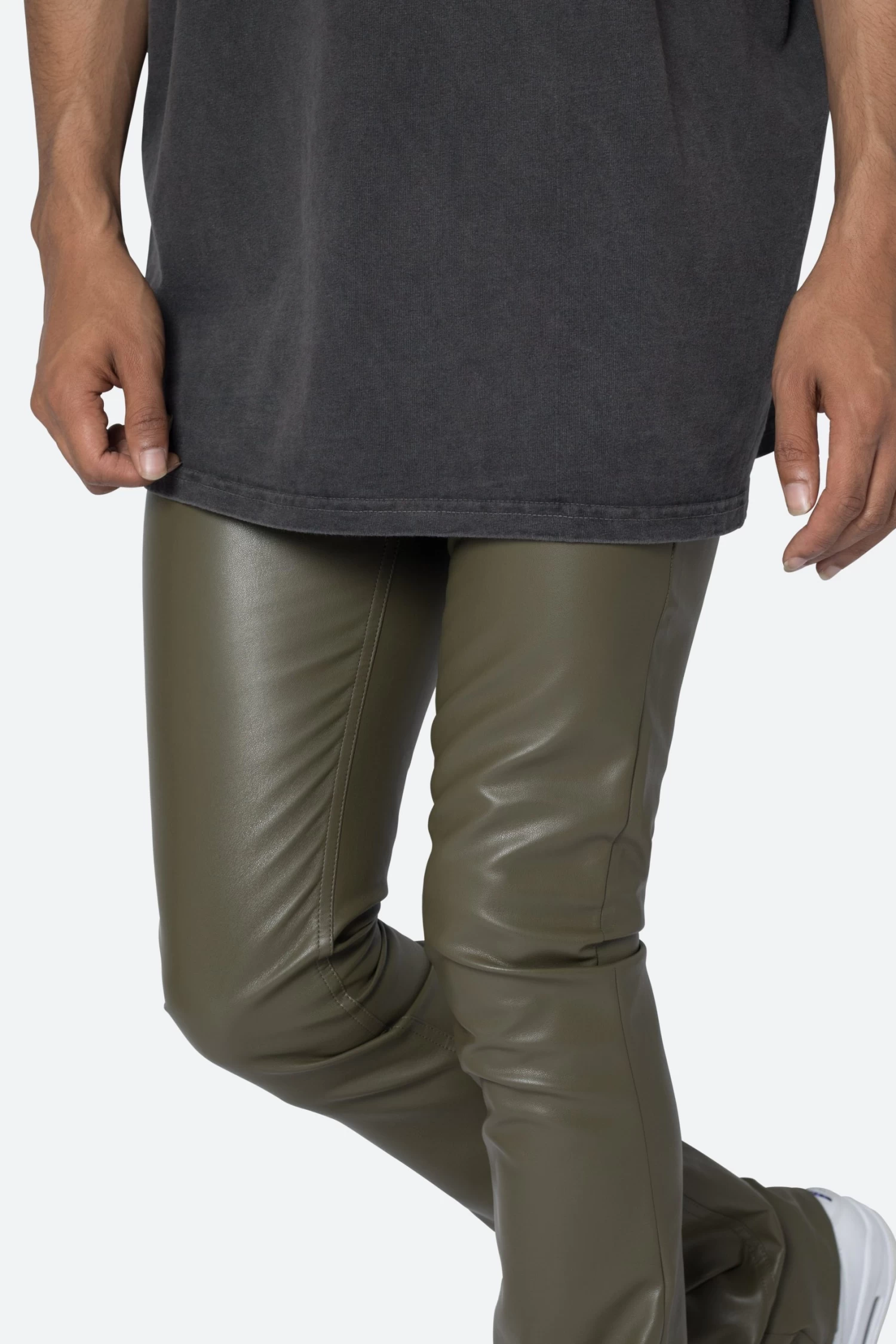 the X533 Skinny Stack Denim is designed with our new X fit which is skinny throughout with an extended inseam for stacking and a flare at the leg opening, and is constructed from faux leather fabric.